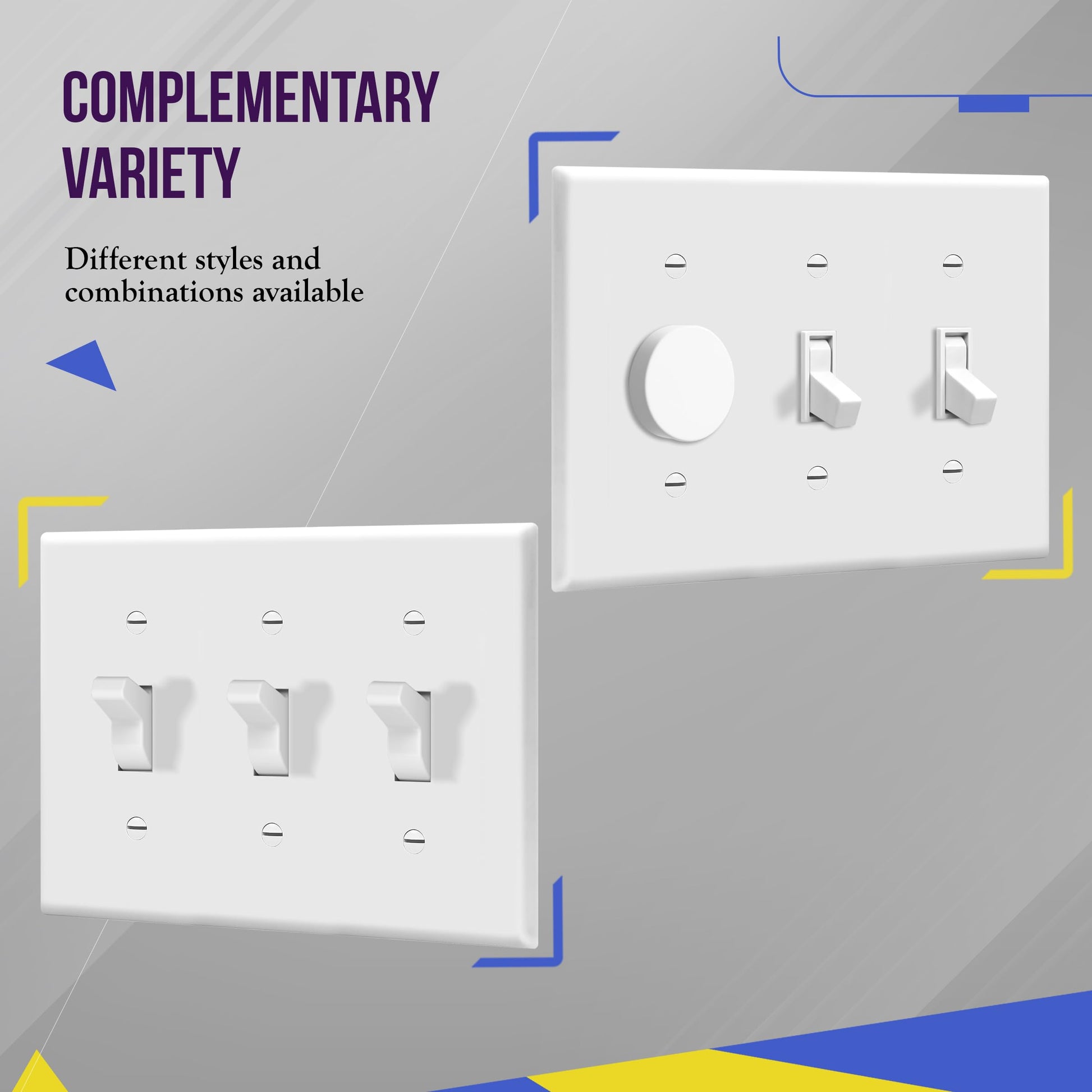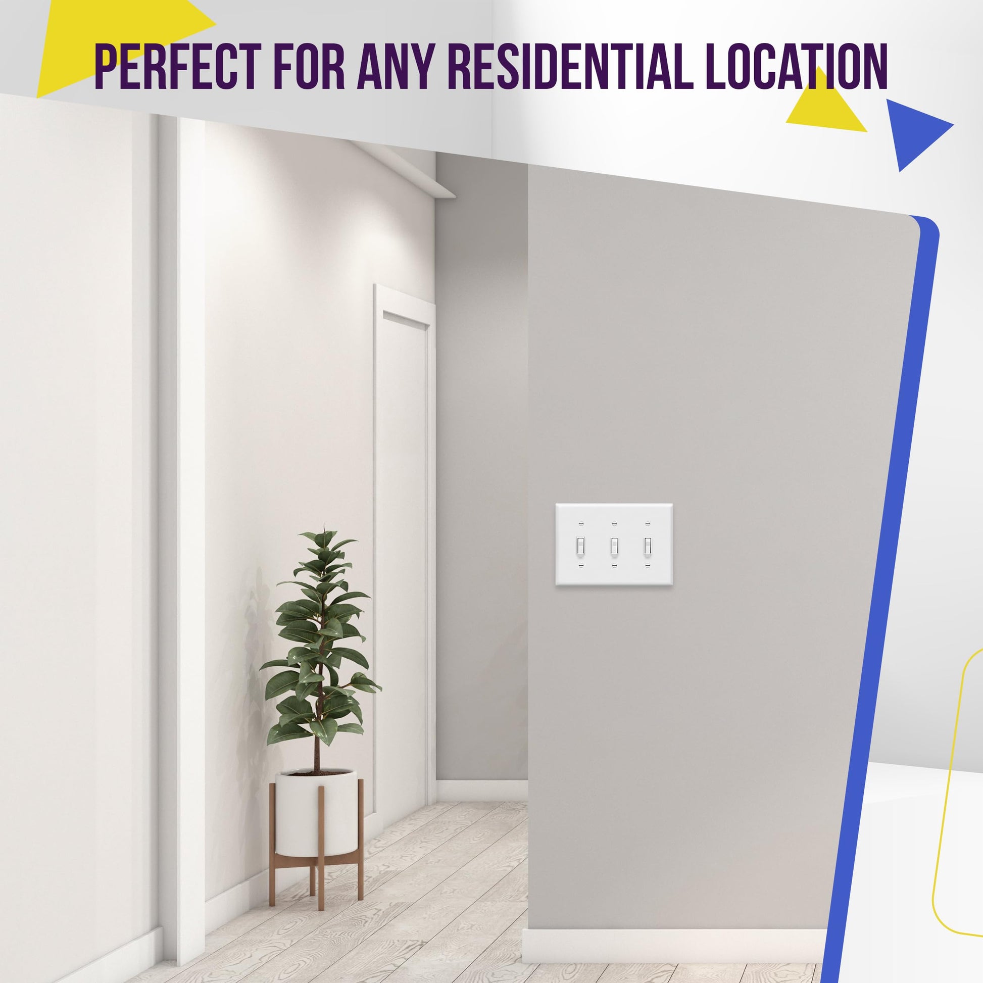 Details: The ENERLITES toggle switch cover is designed to replace the wall plate on a standard home outlet or switch. These wall plates are made from ultra-durable Polycarbonate Thermoplastic material for high levels of heat and impact resistance. The smooth finish of this toggle switch cover provides an attractive look and makes it easy to clean. This toggle switch wall plate comes with a set of matching colored screws to promote a sleek aesthetic.
