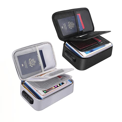 - Small fireproof bag set: The small file and money organizer includes a black small fireproof bag with lock,a silver small fireproof bag with lock,a lock manual.The newly designed small fireproof bag is easy to carry, easy to fold and easy to hide.It can store your Currency,Keys,Cash,Card,Passport,Check,Bill,Coin in a safe and orderly way.Great way to organize your small items easy for you to find whatever items you looking for quickly.