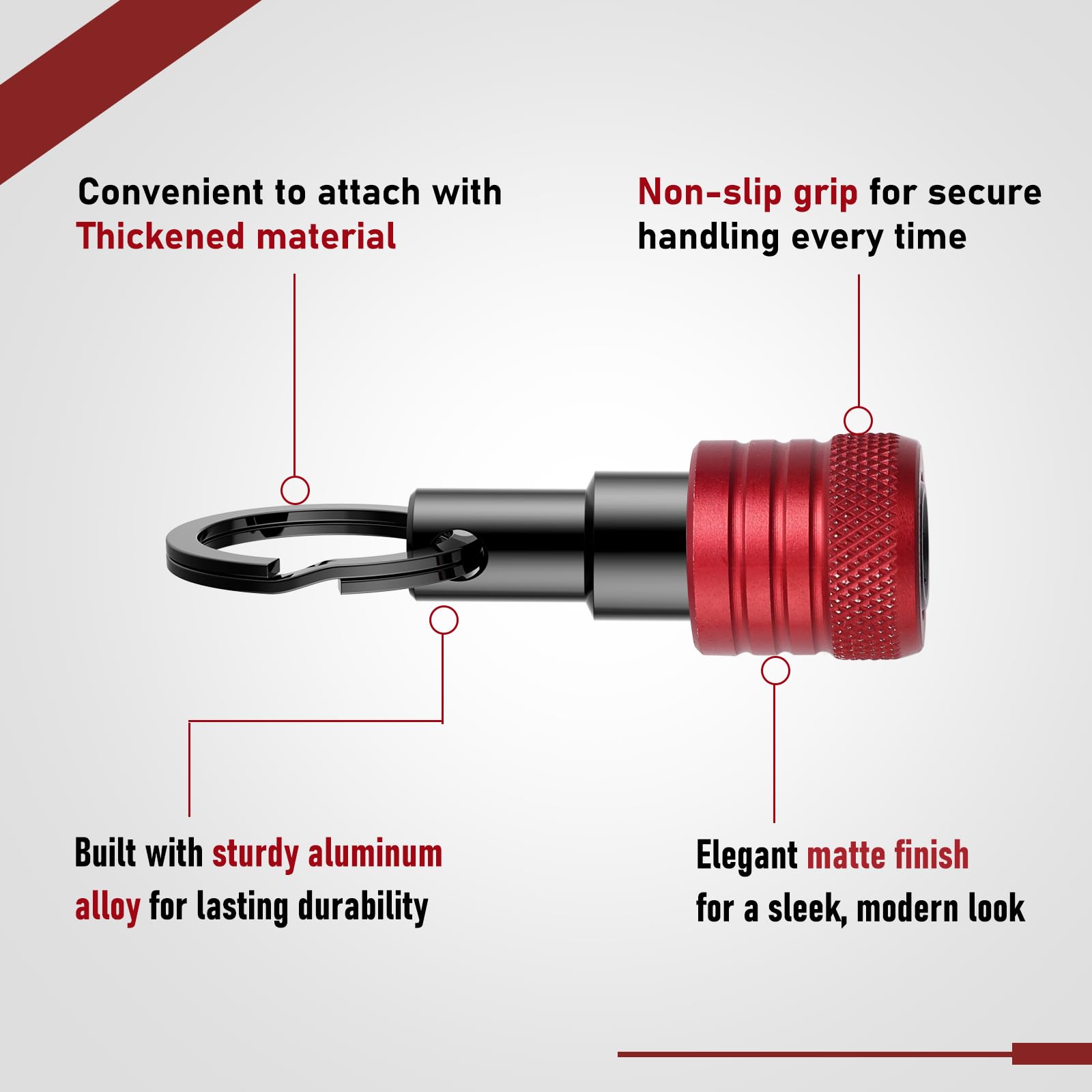 - Instant Lock & Easy Access - The advanced structure of this hex bit holder enables faster change of drill bits. Push to lock, push to release. The built-in carabiner clips securely to tool belts, tool bags, or toolboxes, keeping your drill bits always within reach, whether you’re on a ladder or knee-deep in a project.