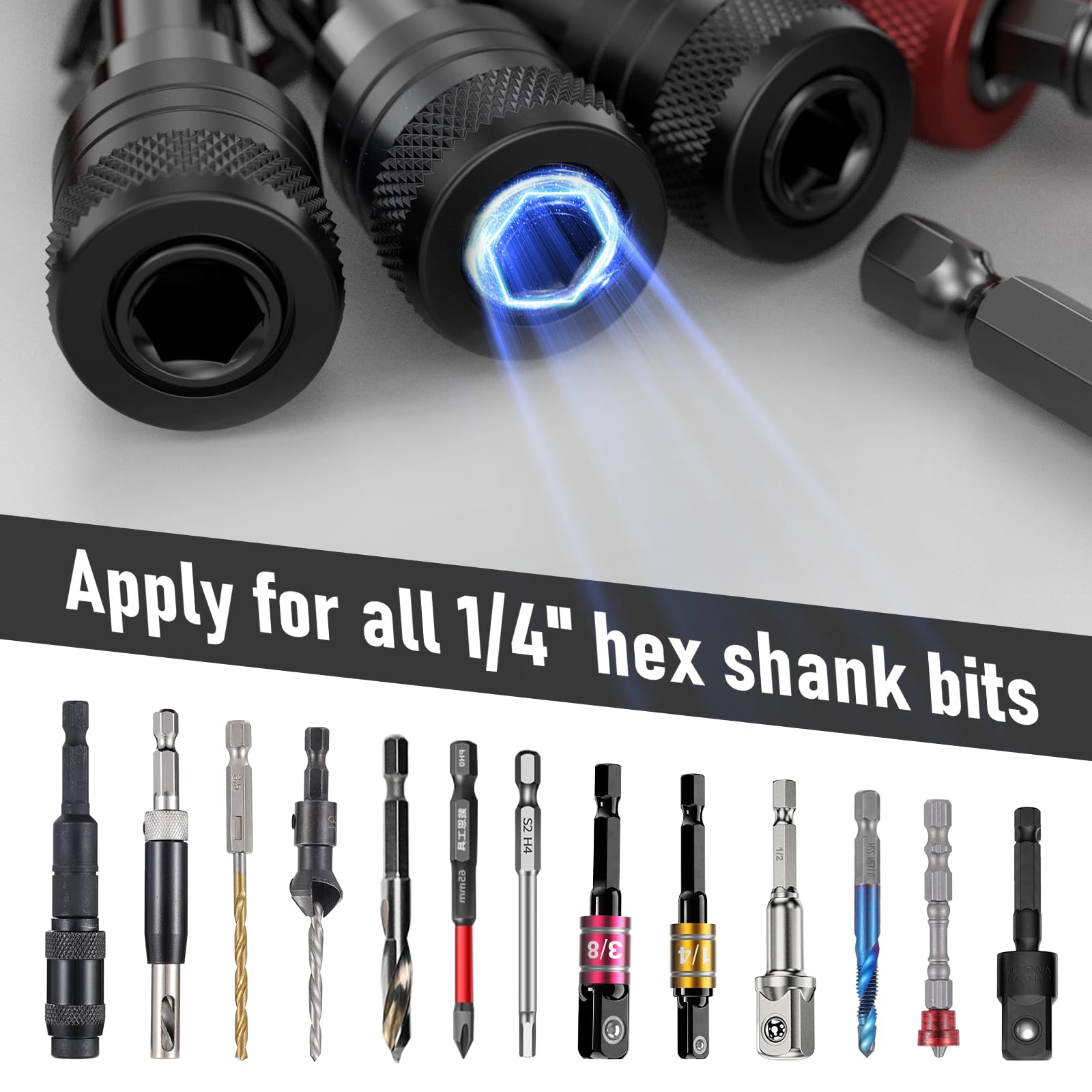 - Works with Most 1/4" Bits - Fits most 1/4" hex shank and socket drill bits, making this carabiner bit holder a must-have for electricians, carpenters, mechanics, and home repair enthusiasts. A must-have for electricians, carpenters, mechanics, and home improvement enthusiasts.