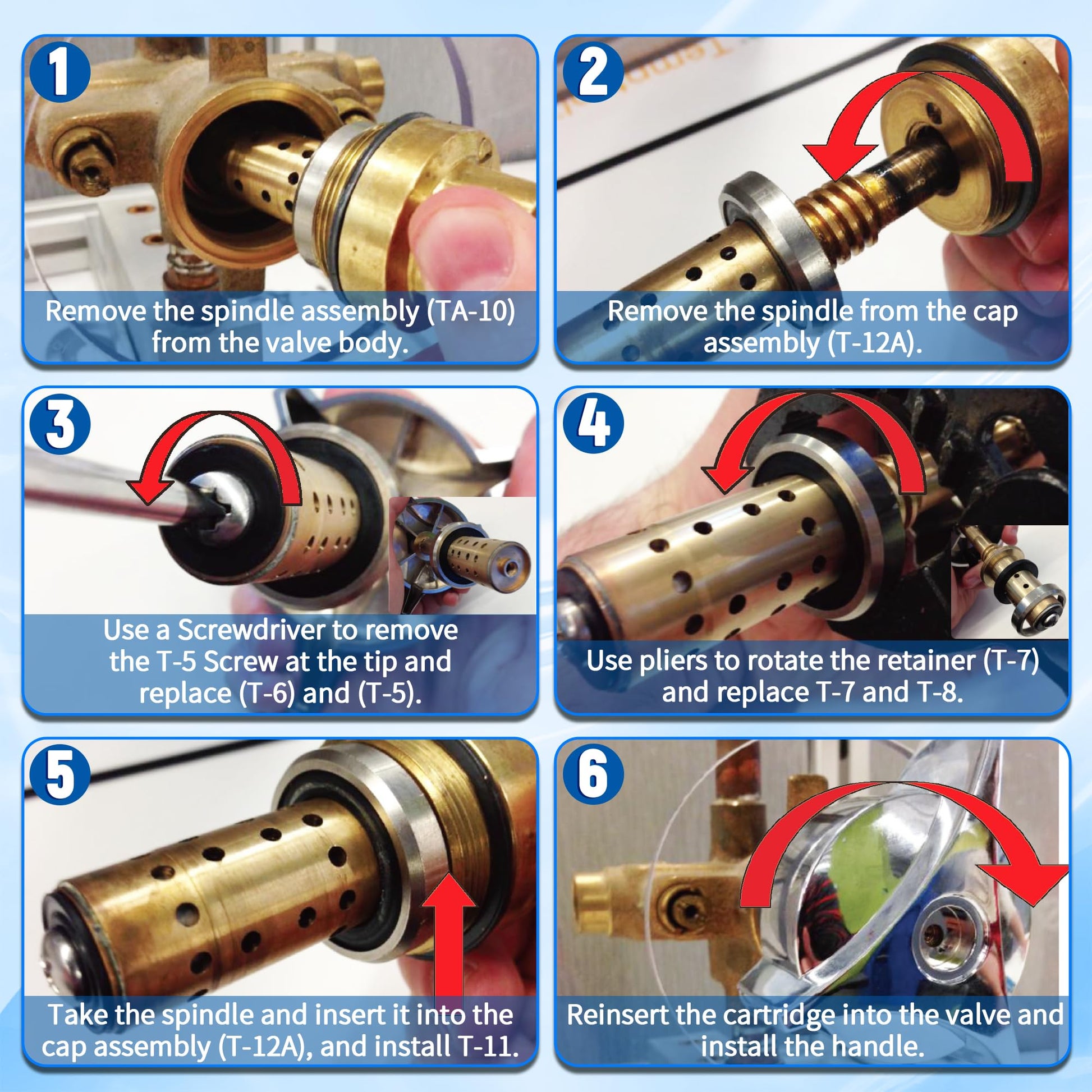 - Package Includes: the washer repair kit includes 2 cold washers (T-8), 2 cold washer retainers (T-7), 2 hot washers (T-6), 2 hot washer screws (T-5), and 2 cap gaskets (T-11); This complete washer repair kit will help you easily fix bathtub and shower valve leakage