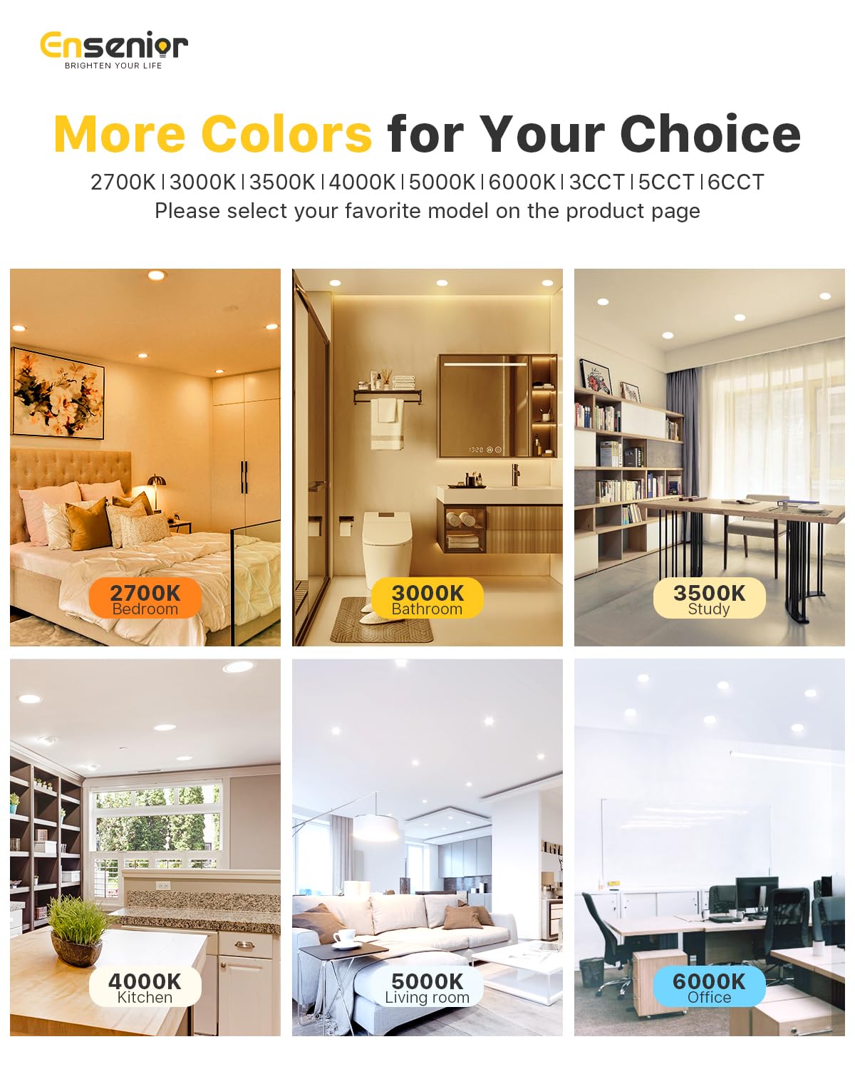 - ENSENIOR BENEFITS - 5-Year warranty, 50000 hours life span, 7/24 customer service. Ensenior’s led recessed ceiling light is trusted by most customers and contractors.