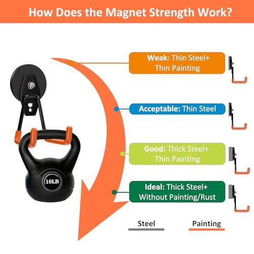 - Multi-purpose magnetic garage hooks: The utility heavy duty magnetic hooks are designed for hanging various tools and equipment in your garage and backyard such as drills, hatches, hoses, bags, wreath, coat, helmets, shovels, rakes, brooms, mops, and other tools.