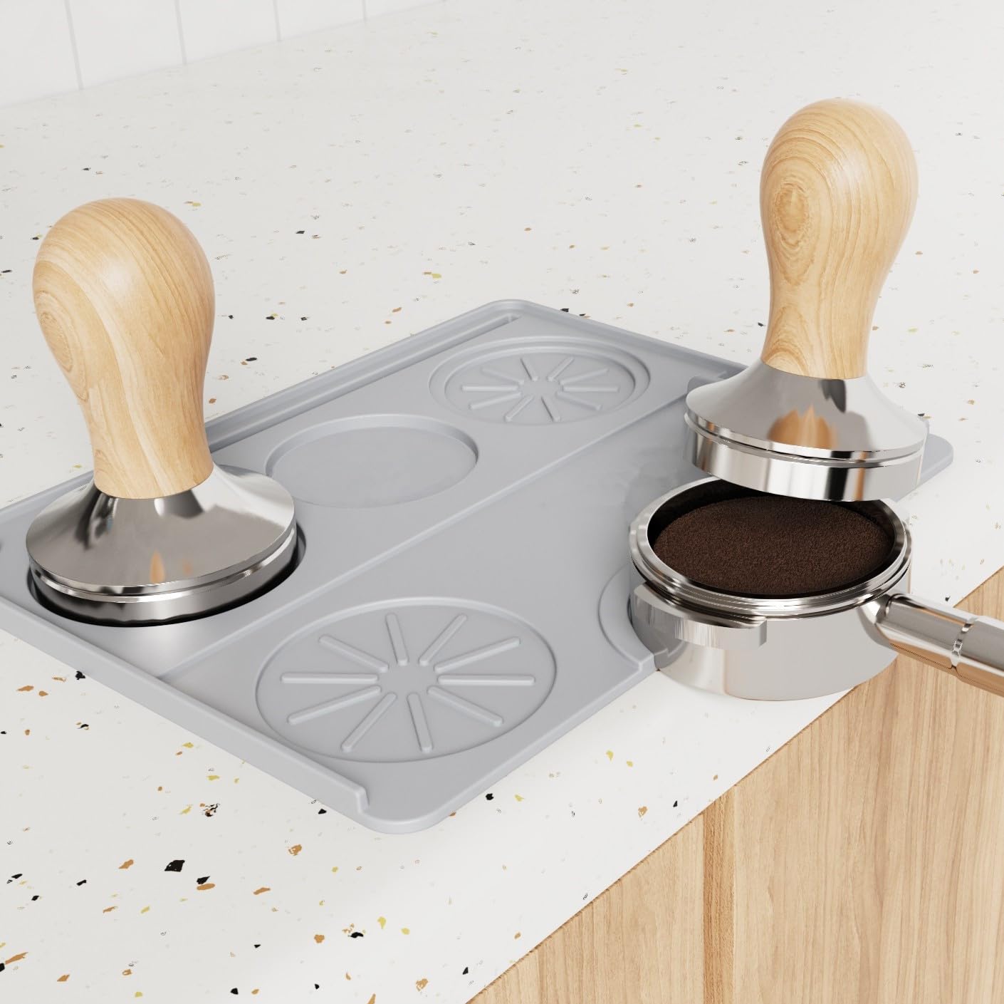 - ✿Countertop Protection: Made of 100% food-grade silicone, odorless, durable. Silicone tamper mat fits snugly on the table and avoids sliding, cushions portafilter dings, and dampens loud metal-on-metal noise.