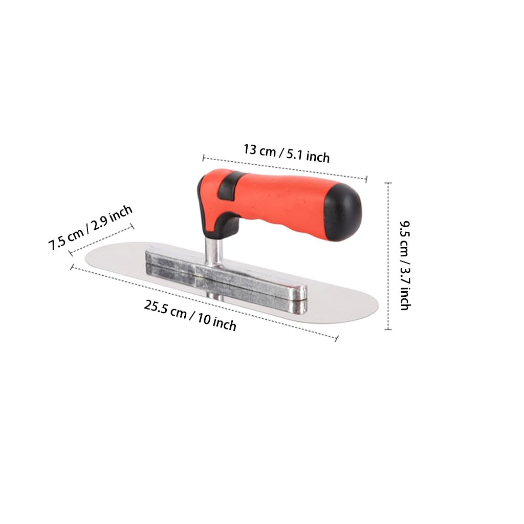 ESreake Concrete Tools Stainless Steel Pool Trowel, 10" x 3" Masonry Hand Tool with Soft Grip Handle, Lightweight, Plastering Trowel for Drywall Plastering Construction, Round End (Small:10"L x 3"W)