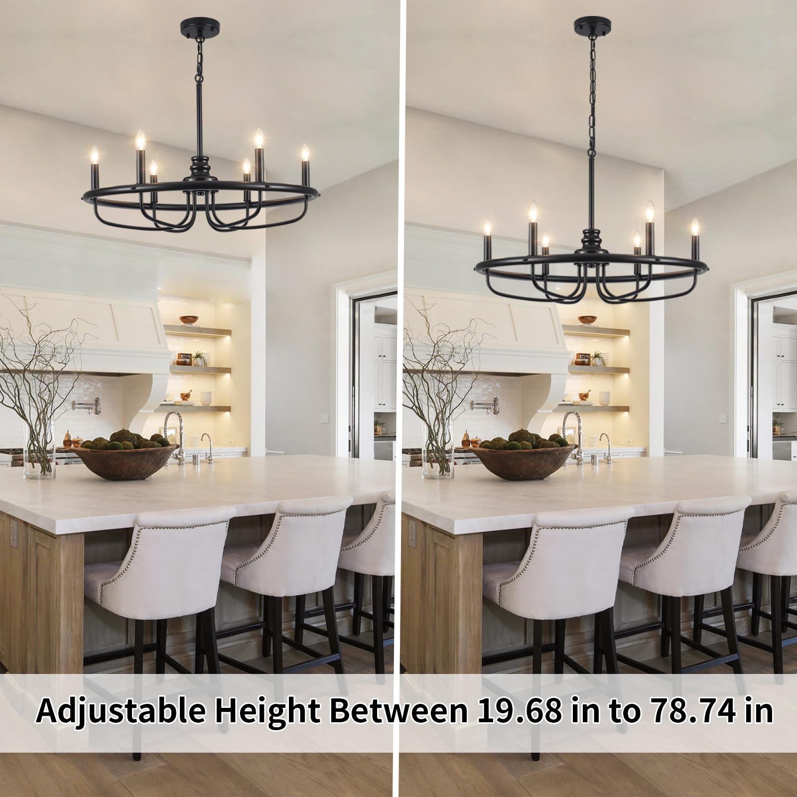 ETONIMERR Black Dining Room Light Fixture 6 Light, Rustic Farmhouse Chandelier Hanging Light Fixture, Metal Candle Kitchen Chandeliers for Living Room Bedroom Foyer