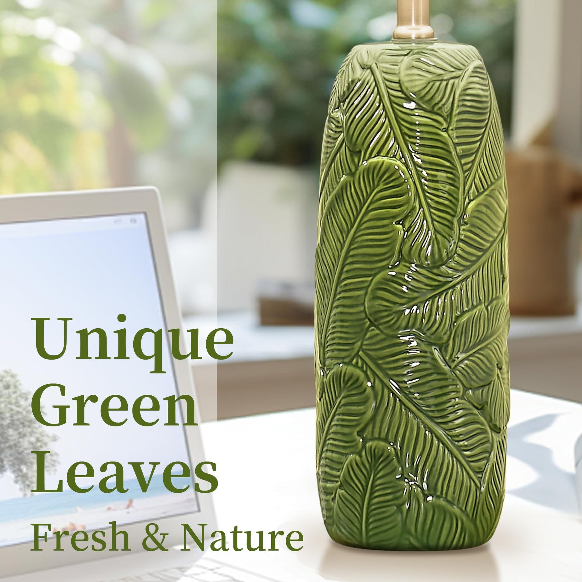 - Green Ceramic Table Lamps Set of 2: Crafted with smooth green ceramic lamp base and white linen shades, this table lamps set of 2 adds a natural touch to your living room, bedroom, or nightstand. The embossed leaves texture creates artistic feeling, while the soft glow enhances relaxation or reading time.