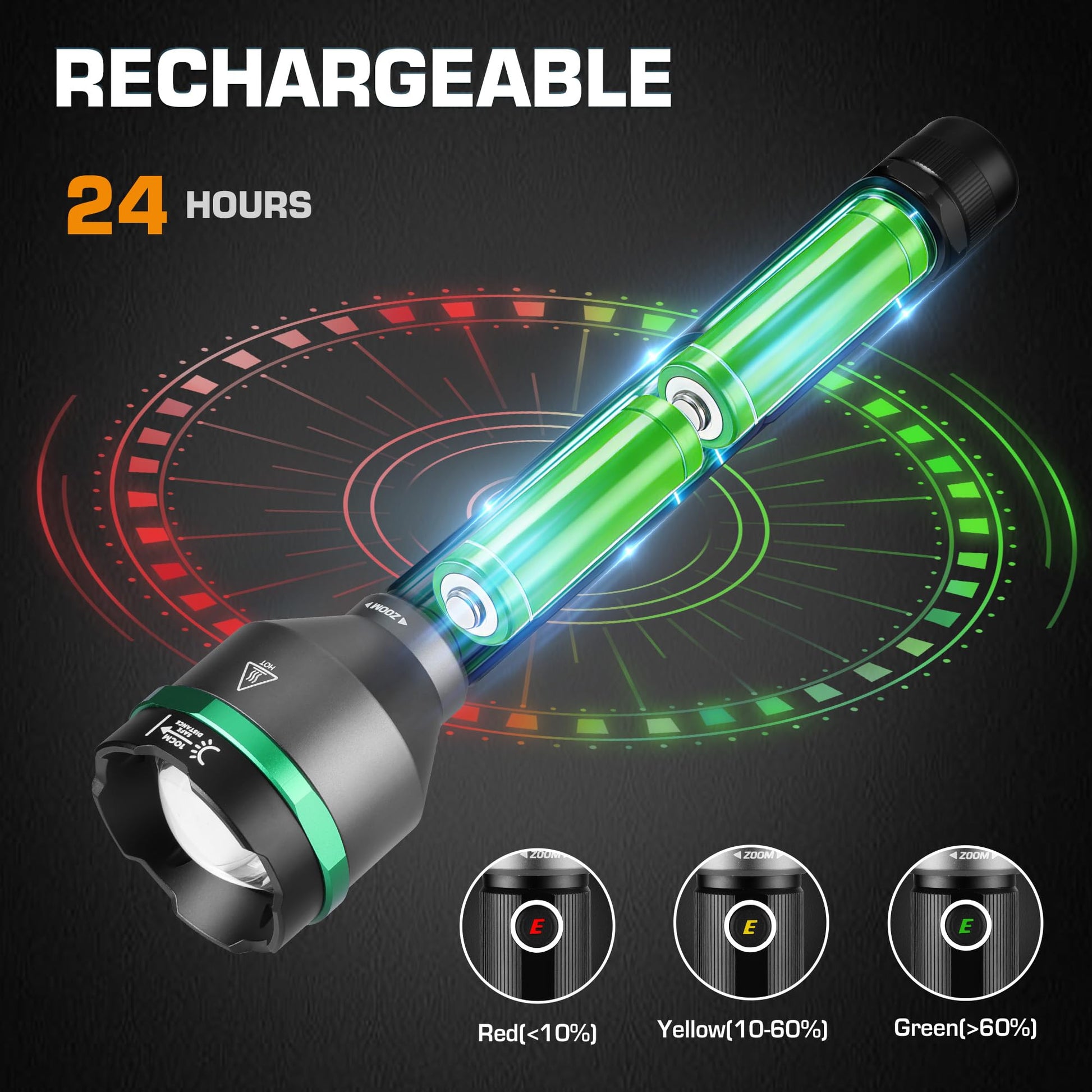- [Zoomable Focus] Zoomable focus lets you easily adjust between spotlight and floodlight. Focus the beam to light up long distances or widen it to illuminate larger areas, perfect for both close-up and far-reaching needs.