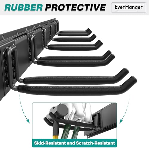 - Space Maximization: Includes 6 double hooks and 3 rails, each 16 inches in length, to optimize wall storage and free up valuable floor space. The 48-inch total rail length allows for flexible, efficient organization of your tools