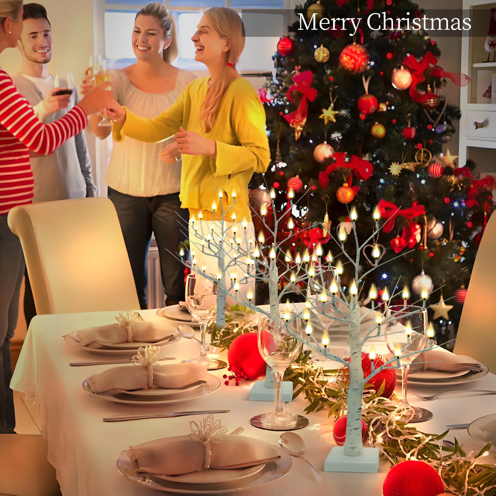 - [Widely Usage]For perfect indoor decoration, birch christmas tree with 24 Flameless led candles can be widely applied to christmas table centerpieces, kitchen desktop, dinner tabletop, shelves, Mantel, bedside cupboard, home, bedroom, livingroon, kidroom. Therefore, it’s also a great festival gift for family and friends.