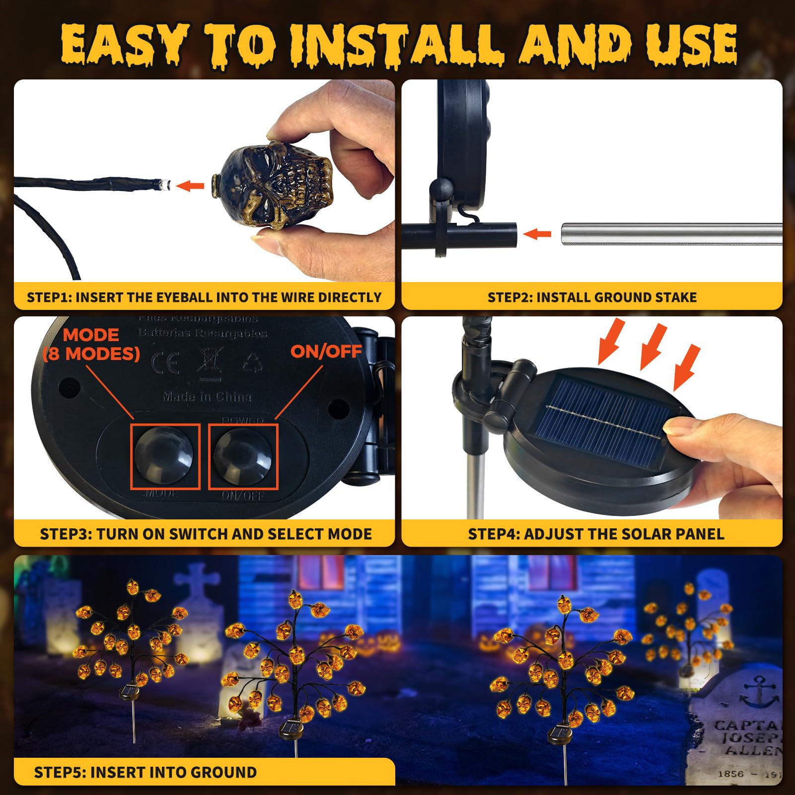 - Great and Creative Halloween Decorations Outdoor: Decorate your crazy Halloween with halloween lights outdoor. 8 different lighting modes creative design will definitely make your yard stand out, easily creating a Halloween crazy and terrifying atmosphere, successfully scaring your neighbors and passersby