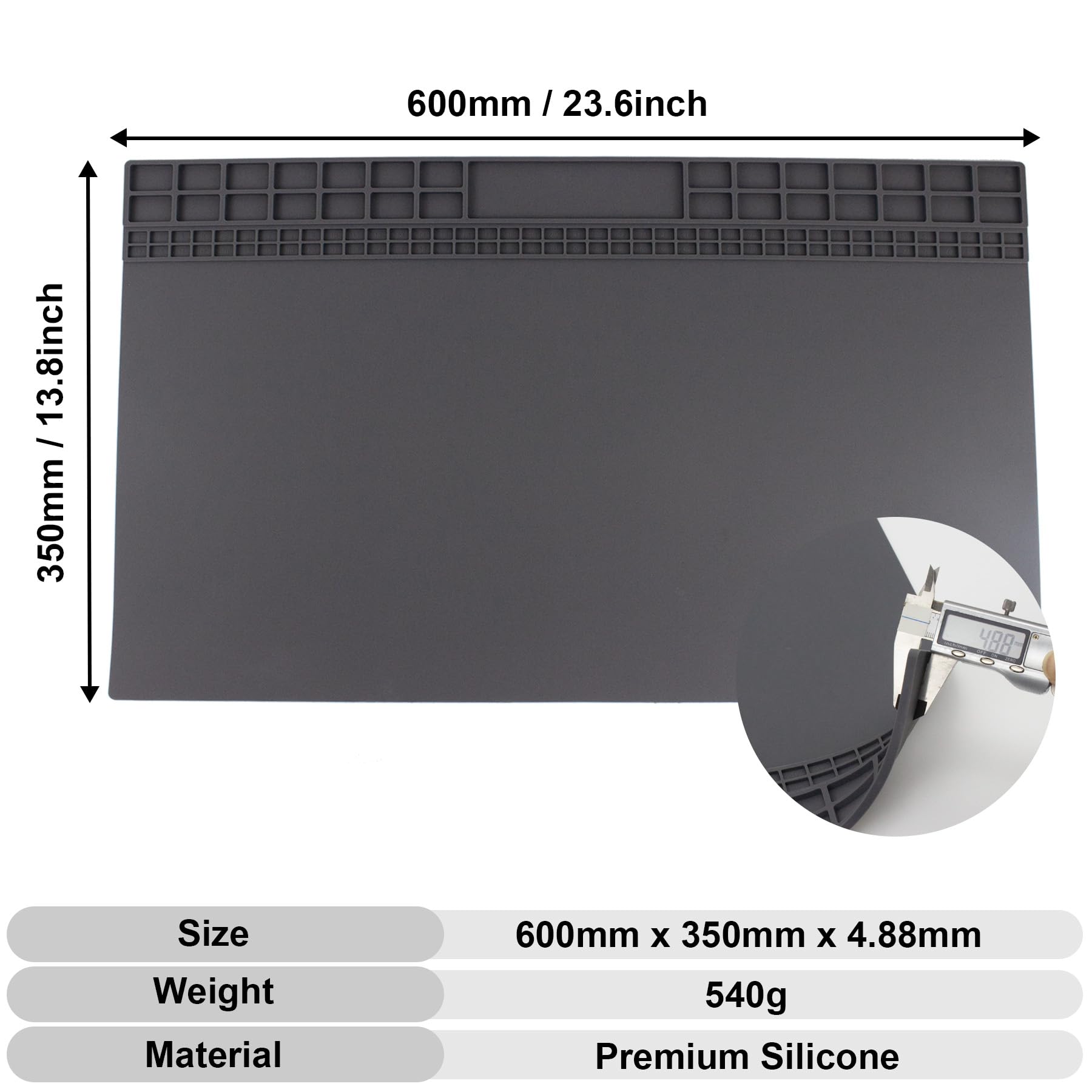 Extra Large Soldering Mat 23.7''x13.8'' Premium Silicone 932°F Heat Resistant Repair Mat Non-Slip Large Silicone Mat for Soldering Iron, Electronic, Phone, Laptop Repair (Grey)