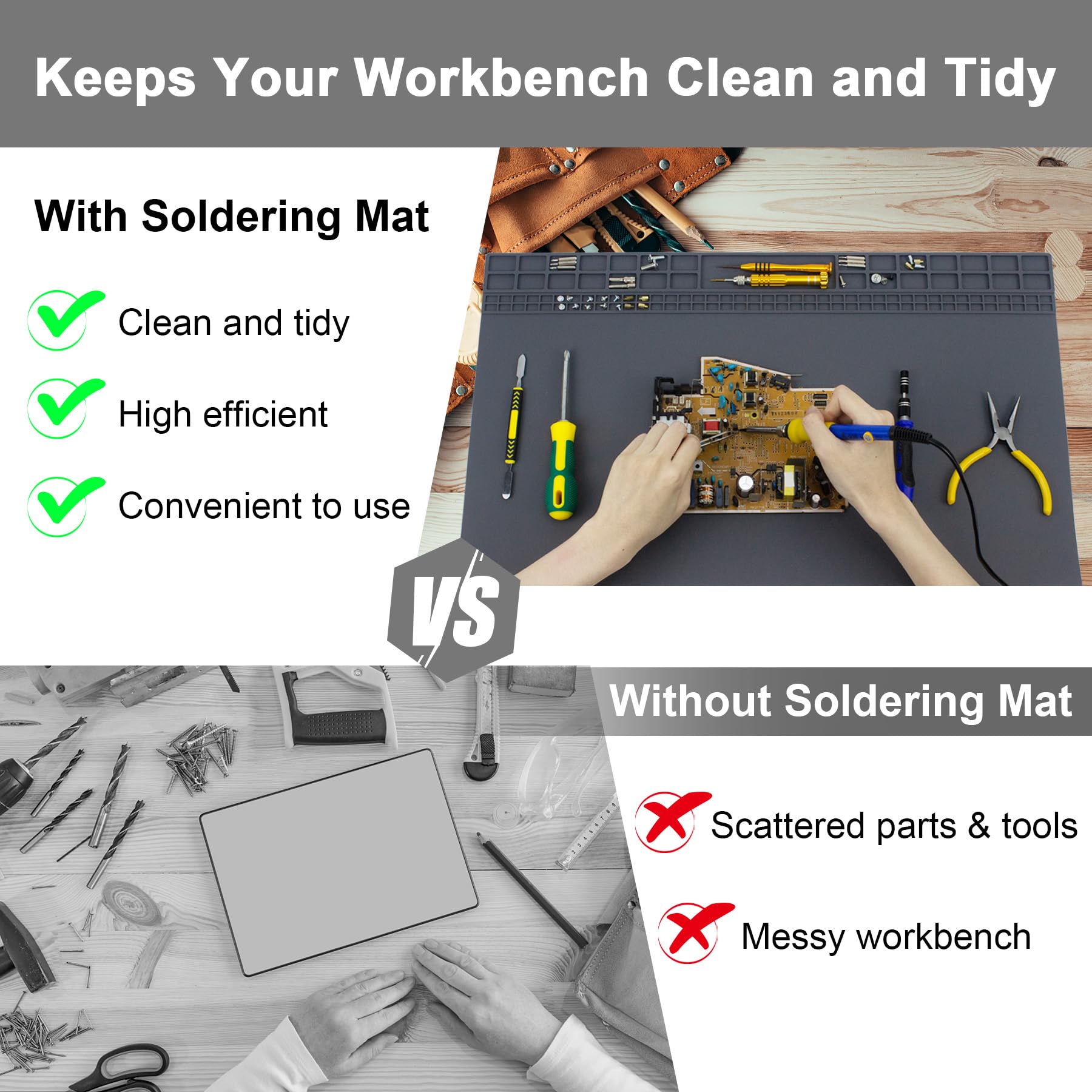 - 【Multiple Applications】 -- The Silicone Repair Mat is perfect for a wide range of electronics repair and assembly tasks. Whether you are working on laptops, smartphones, cameras, circuit boards, or even handcrafting projects, the soldering mar will provide a reliable and convenient surface to work on.