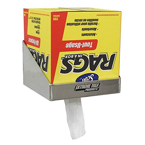 - Fits all standard 200-count rag-in-a-box style containers, securely holding them with a clever dispensing slot that allows a swift pull-down rag removal