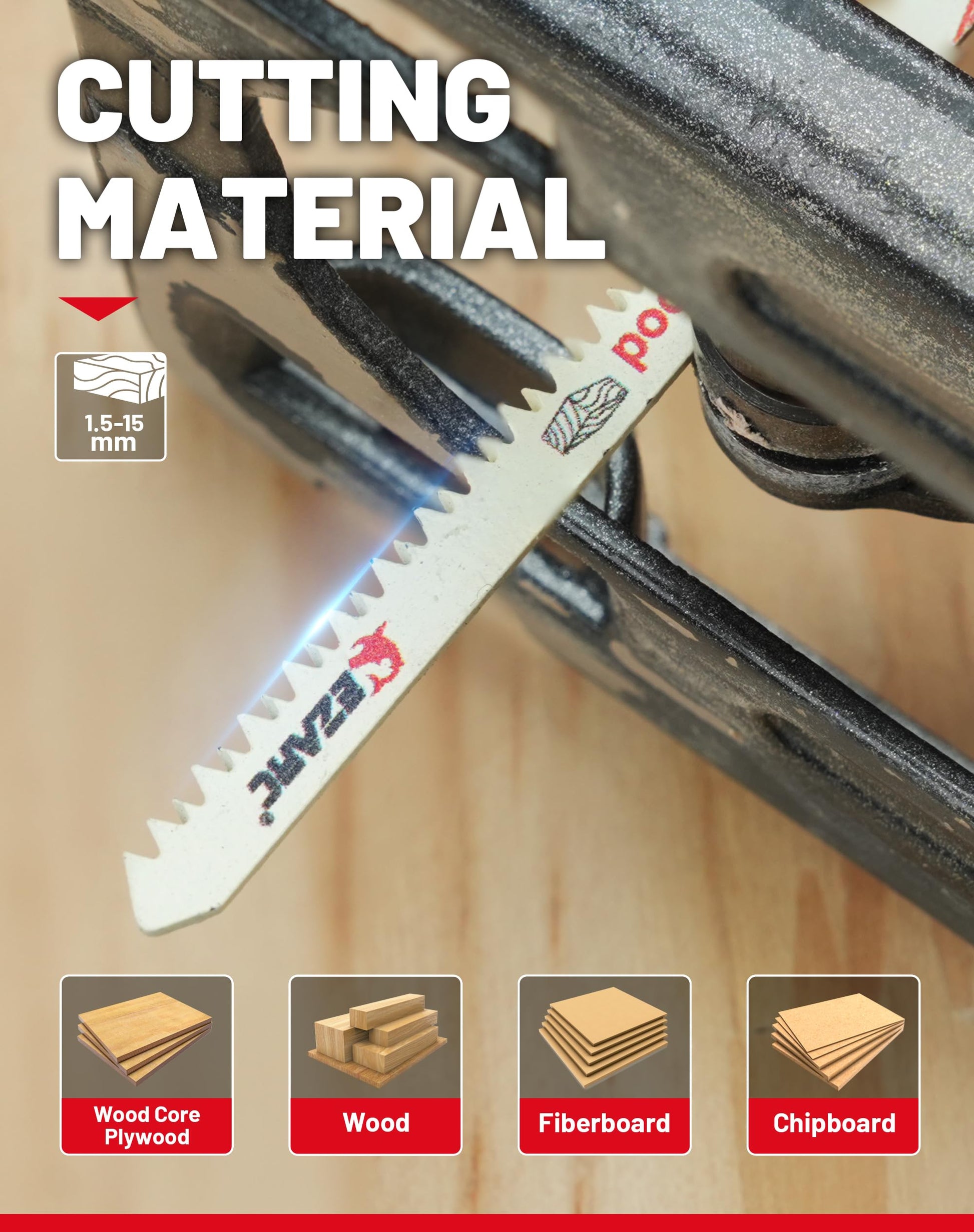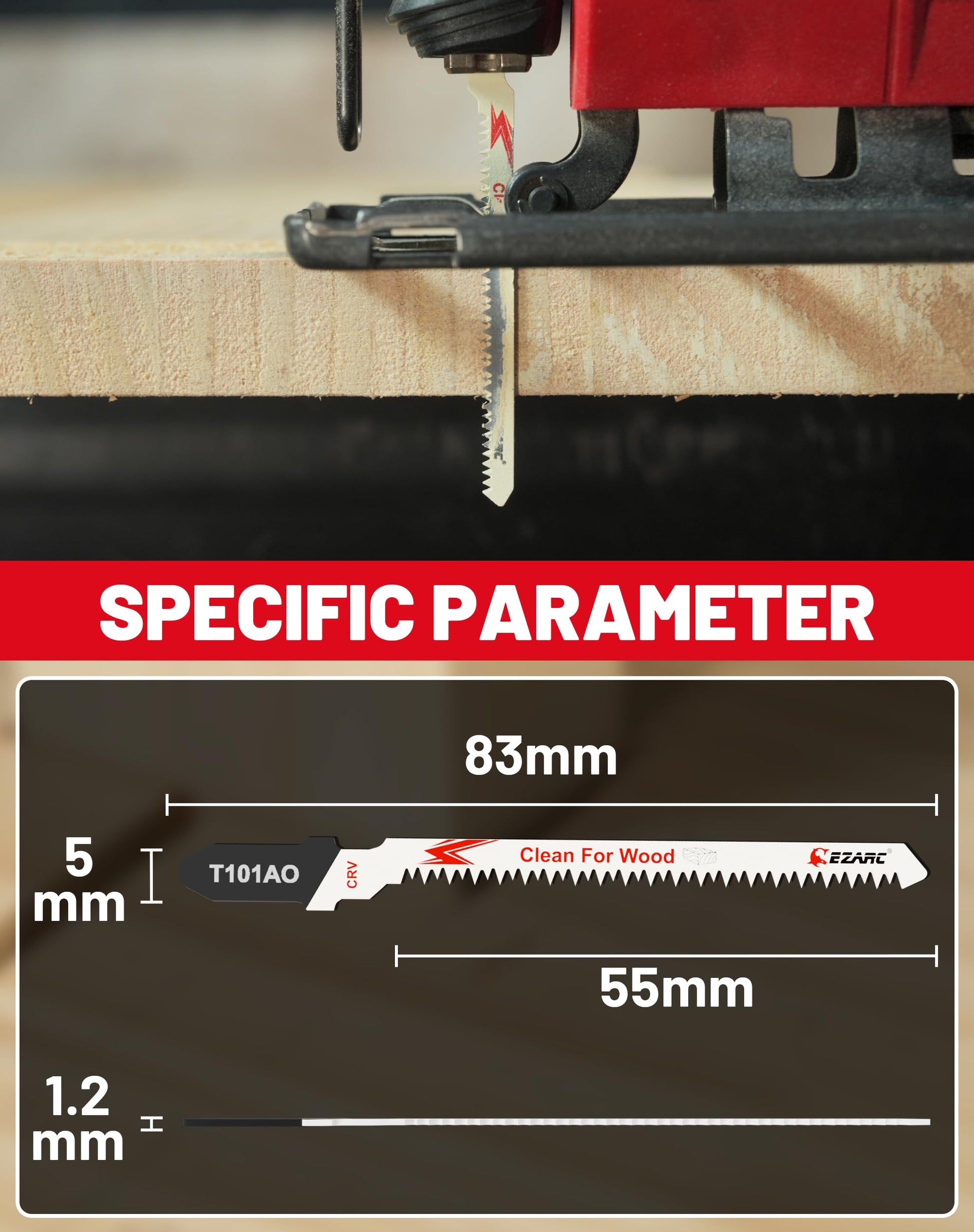 - 【Clean & Precision Cutting】EZARC Jigsaw blades feature 20TPI high density precision saw teeth, which can ensure clean & precision wood cutting. The wood surface is cut smoothly, thus reducing the need for additional sanding steps