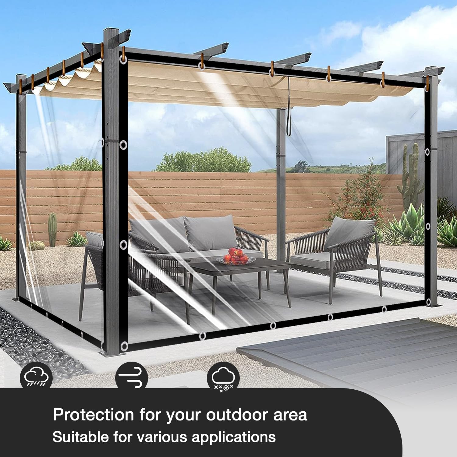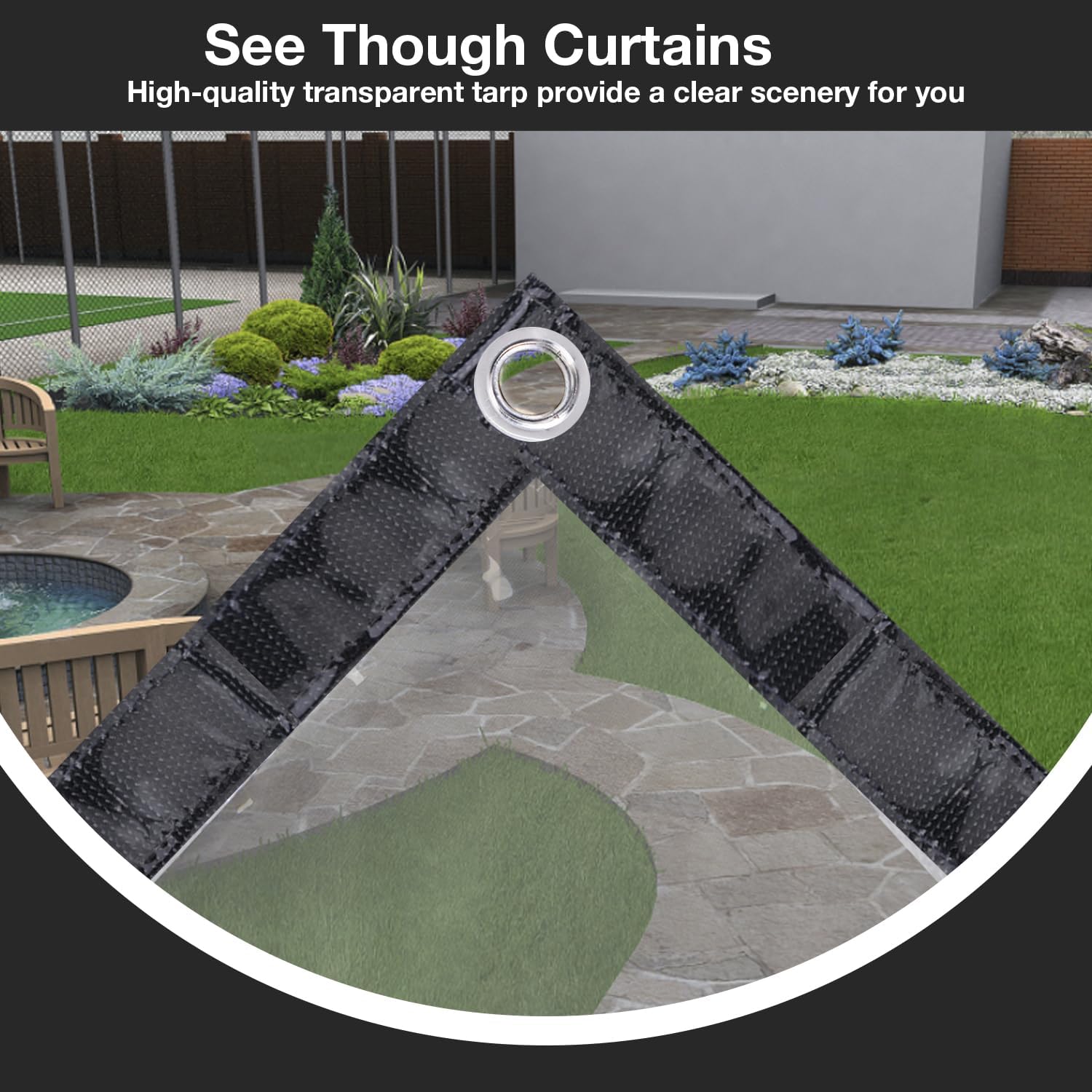 - SEE THROUGH CURTAIN: With the outdoor curtain installed, you can have an extra private space of your own. Not only can you see everything outside through the PVC waterproof layer, but at the same time prevent sunlight. This special material curtain can also keep the interior warm.