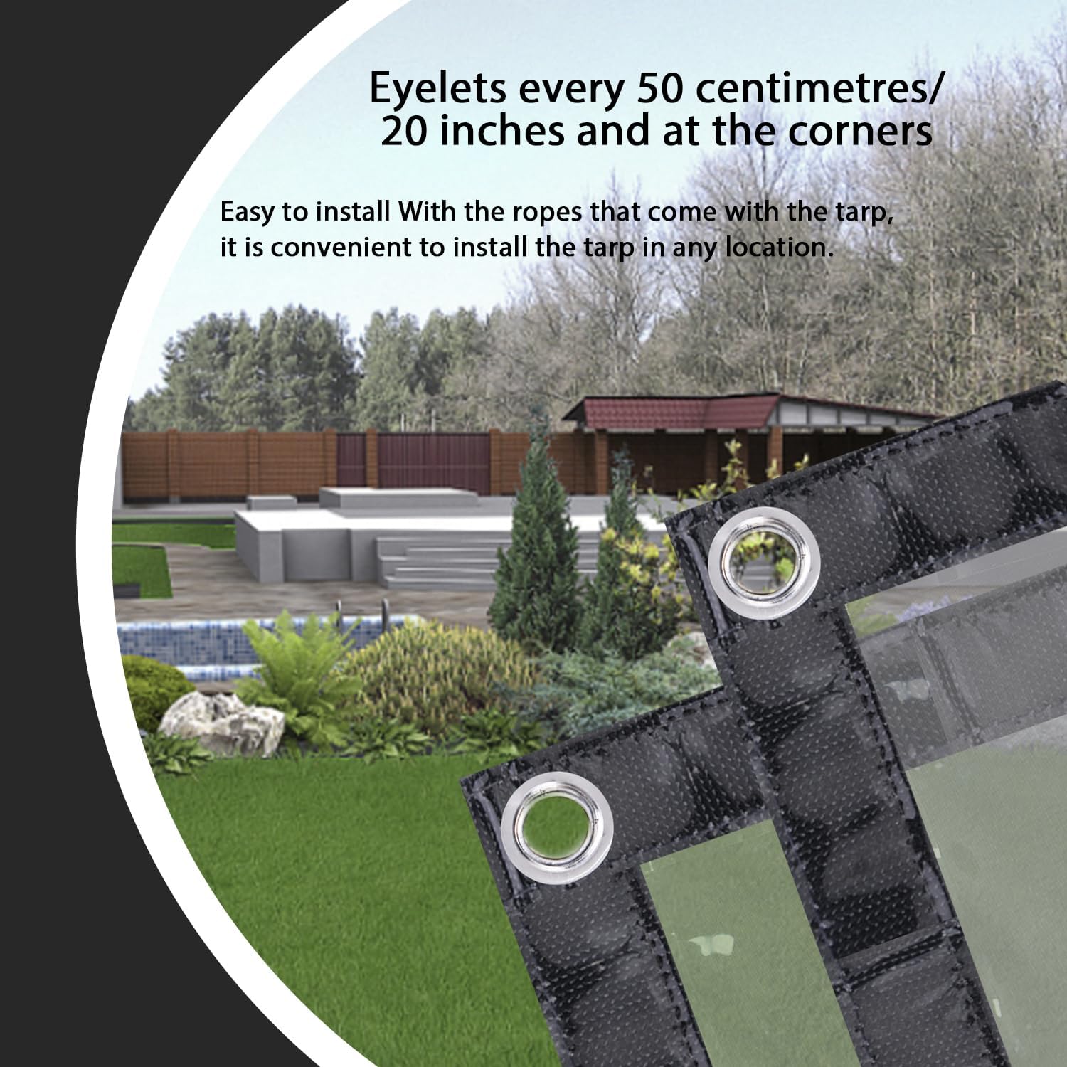 Ezcasch Clear Tarp (3' x 3'), 15 Mil Clear Vinyl PVC Tarp Waterproof Tarpaulin 100% Transparent PVC Tarps Small Cover Plastic Sheeting Window Sheets Drop Cloth(Black Edge)