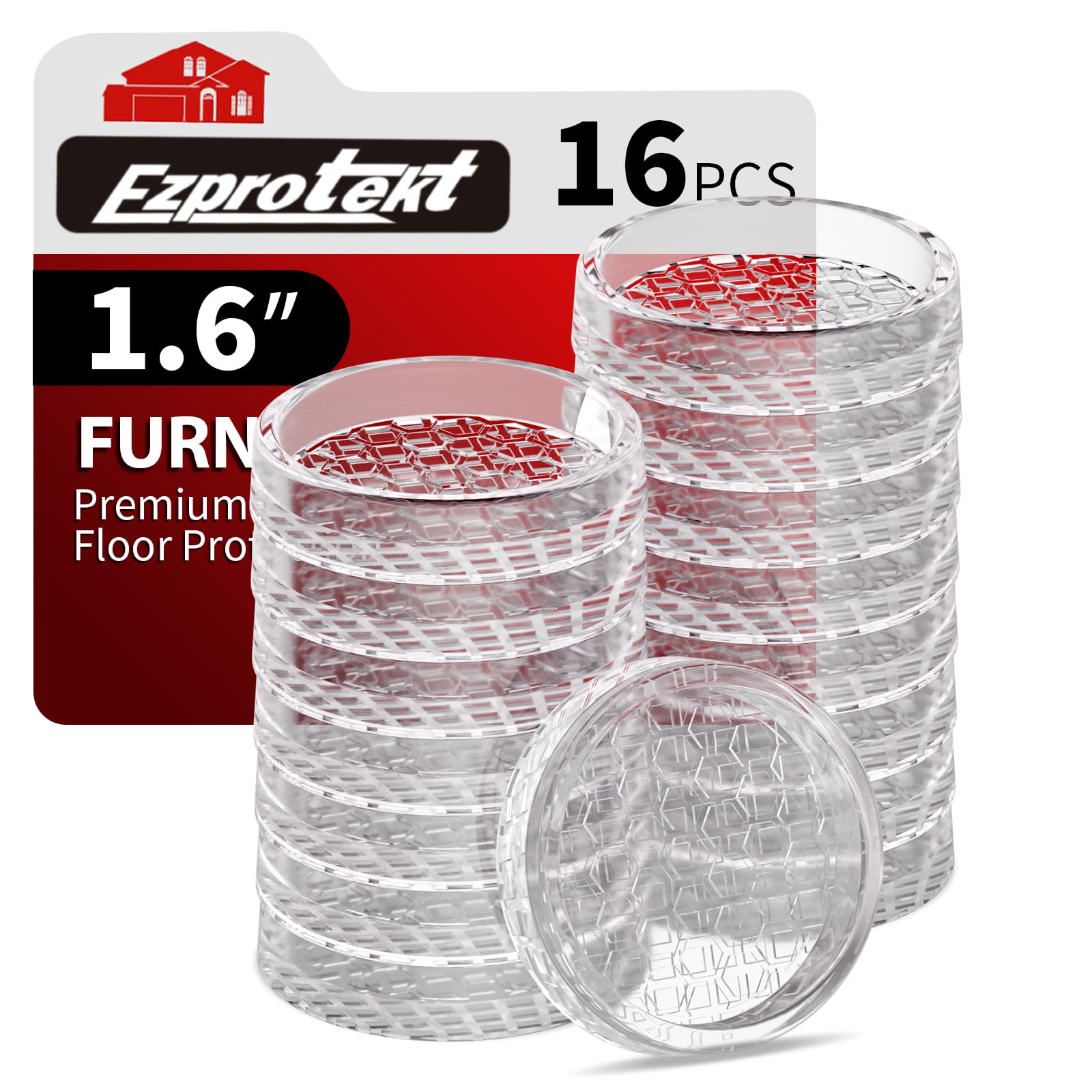 Ezprotekt 1.6 inch Clear Non Slip Furniture Pads for Hardwoods Floors, 16 Pcs Non Skid Round Rubber Furniture Coasters Cups Floor Protectors for Sofa Bed Couch Chair Desk, Prevent Scratches