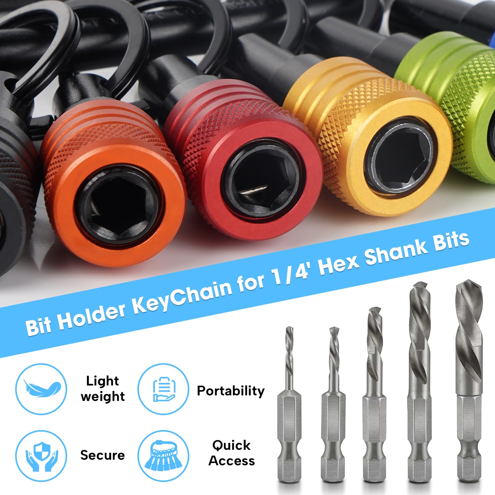 - UNIVERSAL FOR 1/4 INCH DRILL BITS- The bit holder is designed with universal compatibility for 1/4 inch quick hex shank and 1/4 inch hex socket. This impact socket organizer keychain tool keeps a variety of 1/4 inch bits handy, suitable for various electric drivers or hand-held drivers. It's suitable for professionals such as contractors, builders, carpenters, and woodworkers, as well as DIY enthusiasts and maintenance professionals working in high-altitude operations.