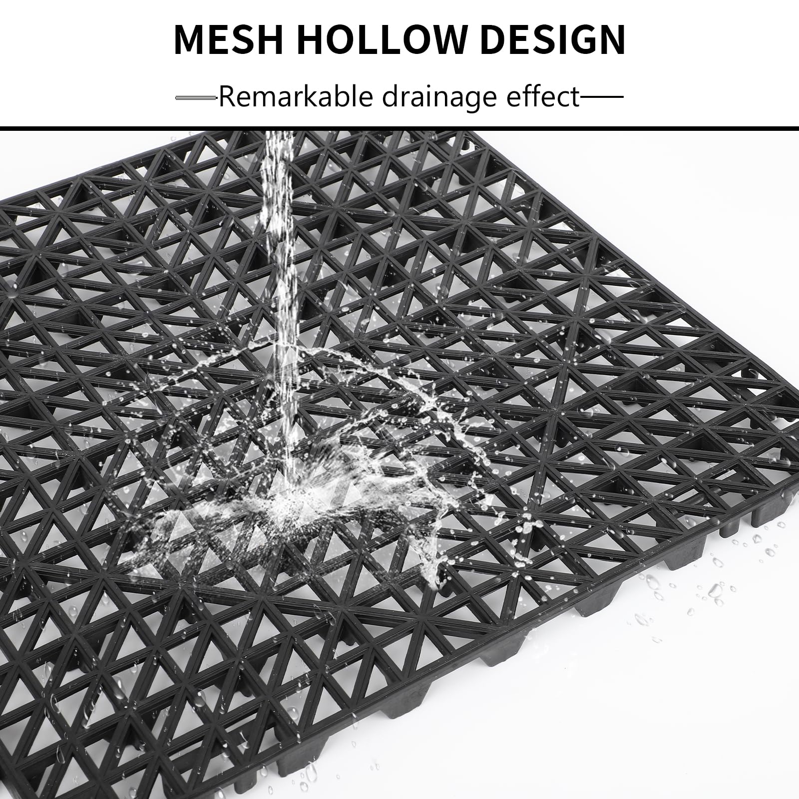 - EASY TO MAINTAIN: The drainage interlocking floor tiles are made of PVC, which is not easy to get dirty. Interlocking floor tiles can block hair and oil stains. Just rinse them clean when they are dirty. It is very simple and easy to maintain