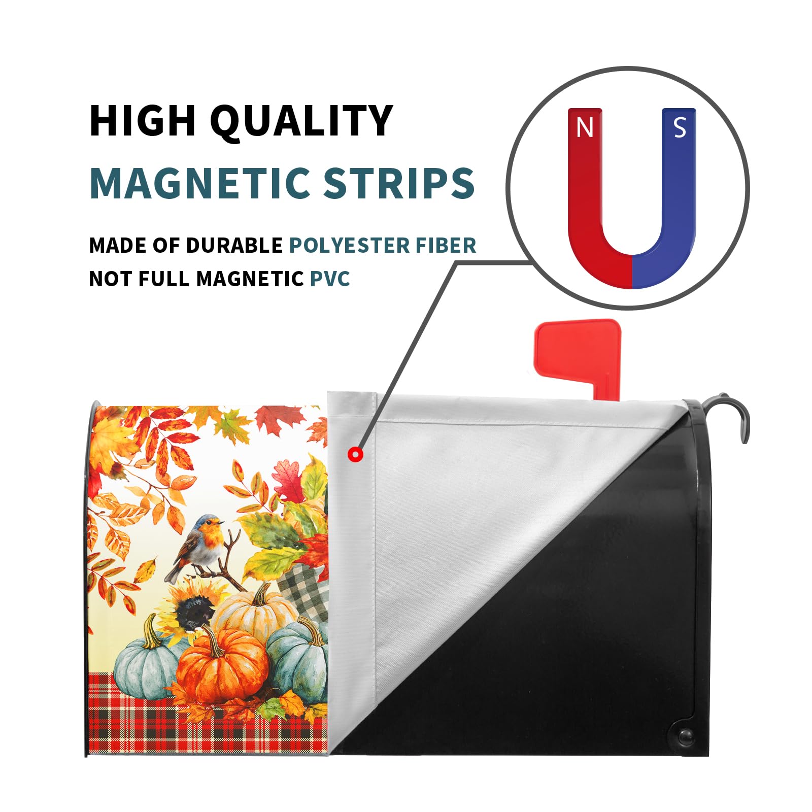 - Material: Autumn mailbox covers magnetic is made of high-quality waterproof oxford cloth material, anti-UV, sun protection, waterproof, fade-resistant, reusable.This mailbox magnetic cover can not only be used to decorate your mailbox, decorate your garden, but also protect your leisure from the sun and rain.