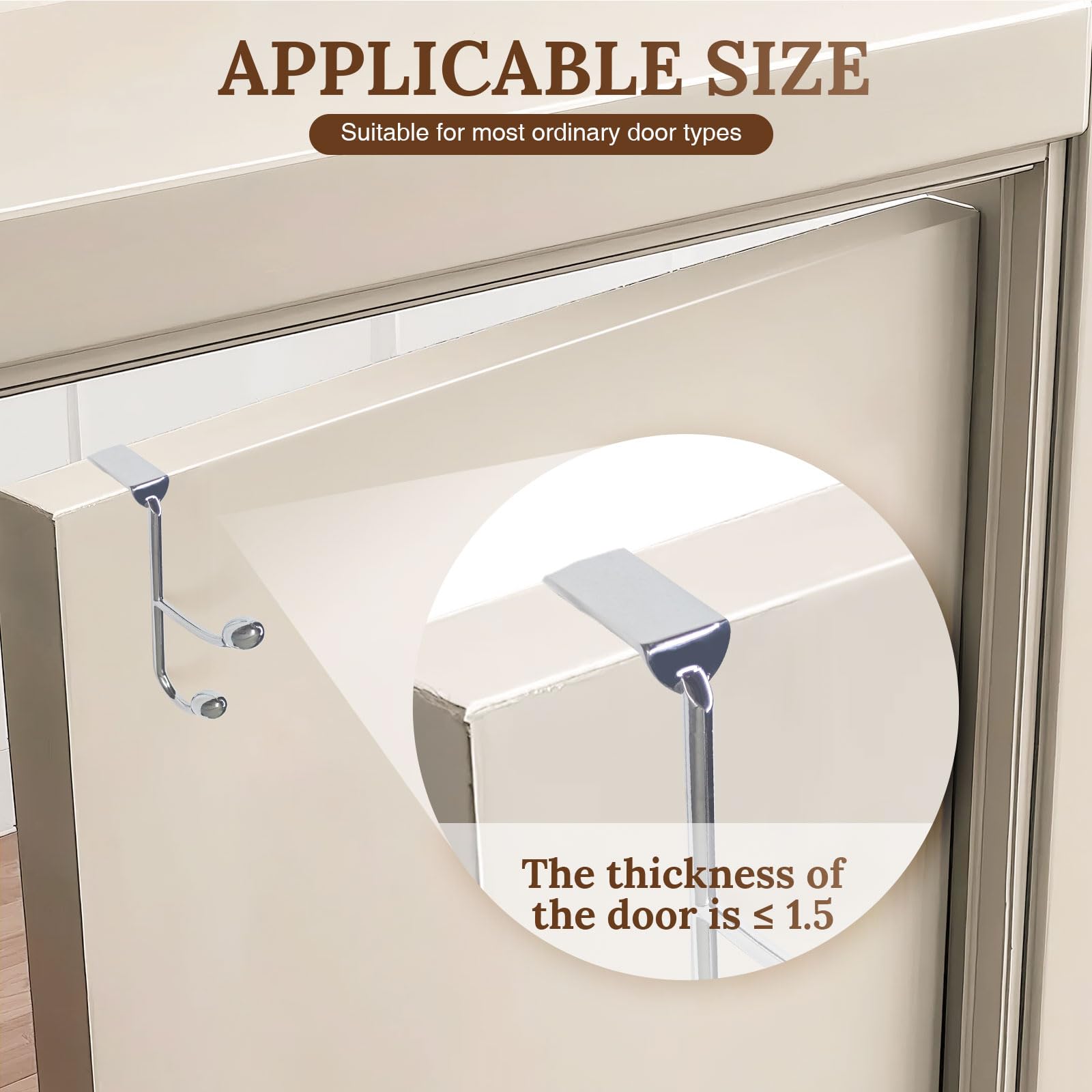 FantasHome Traditional Over The Door Double Hooks, Organizer for Hanging Coats, Hats, Towels, Purses in Bedroom, Bathroom, Laundry Room and More - Silver