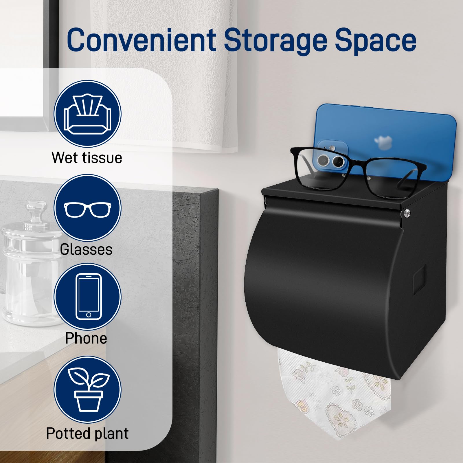 - MULTIPURPOSE: Our TP holder includes a 4.3*5.5in convenient shelf on the top, great for holding your phone, glasses and other items. Modern design is very suitable for toilet, bathroom, sinks and so on