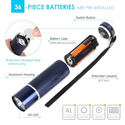 - Exceptional Value: you will get 12-pack mini flashlights and 36 AAA batteries are already pre-Installed. Please turn off the rear cap, remove the insulated label before use.