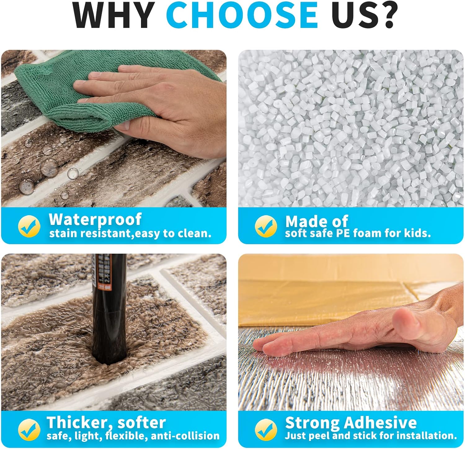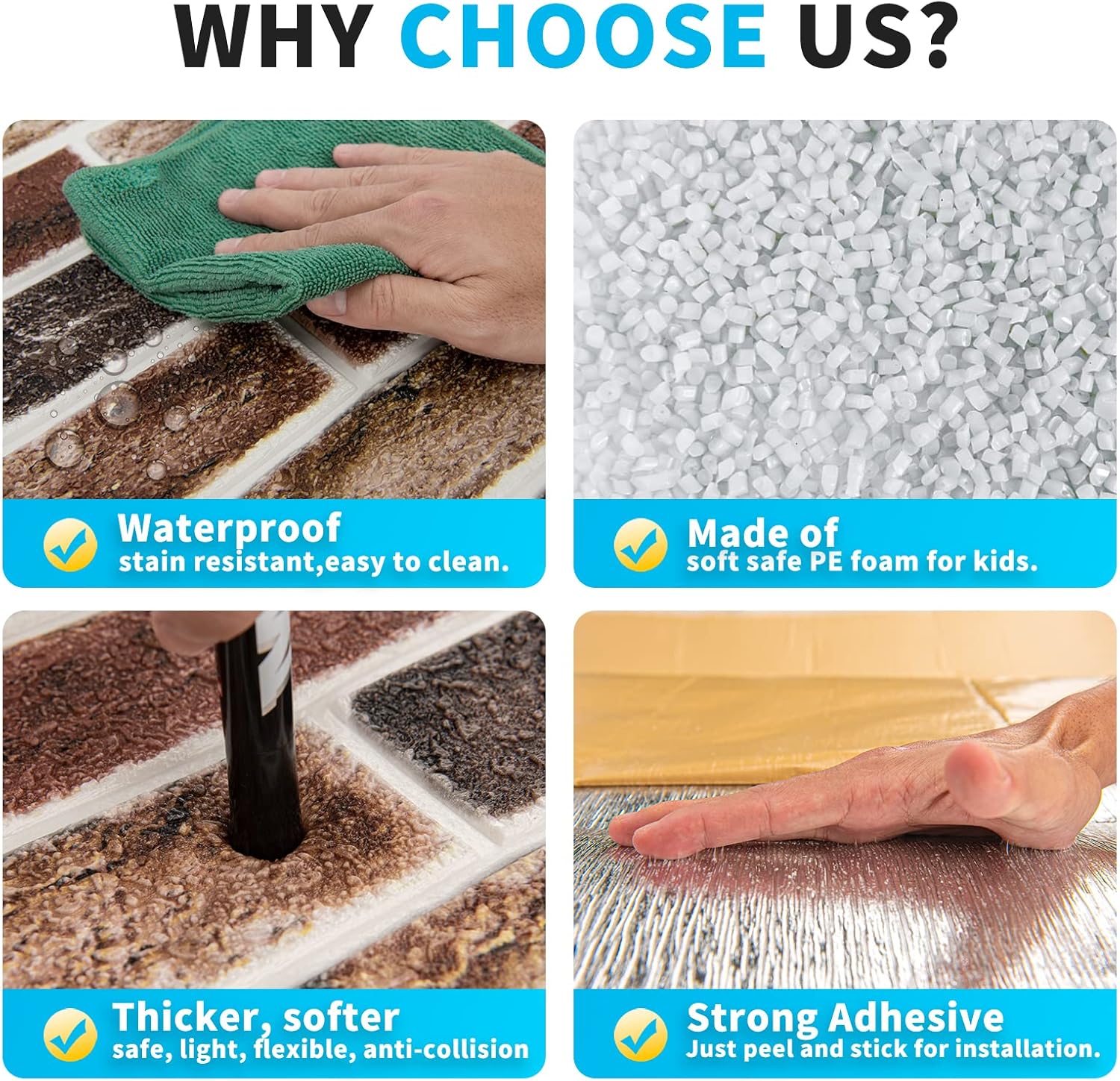 - Features: Square sheet with brick design, easy to match installation, Peel and Stick, Acoustic, anti-collision, waterproof, and stain resistance.