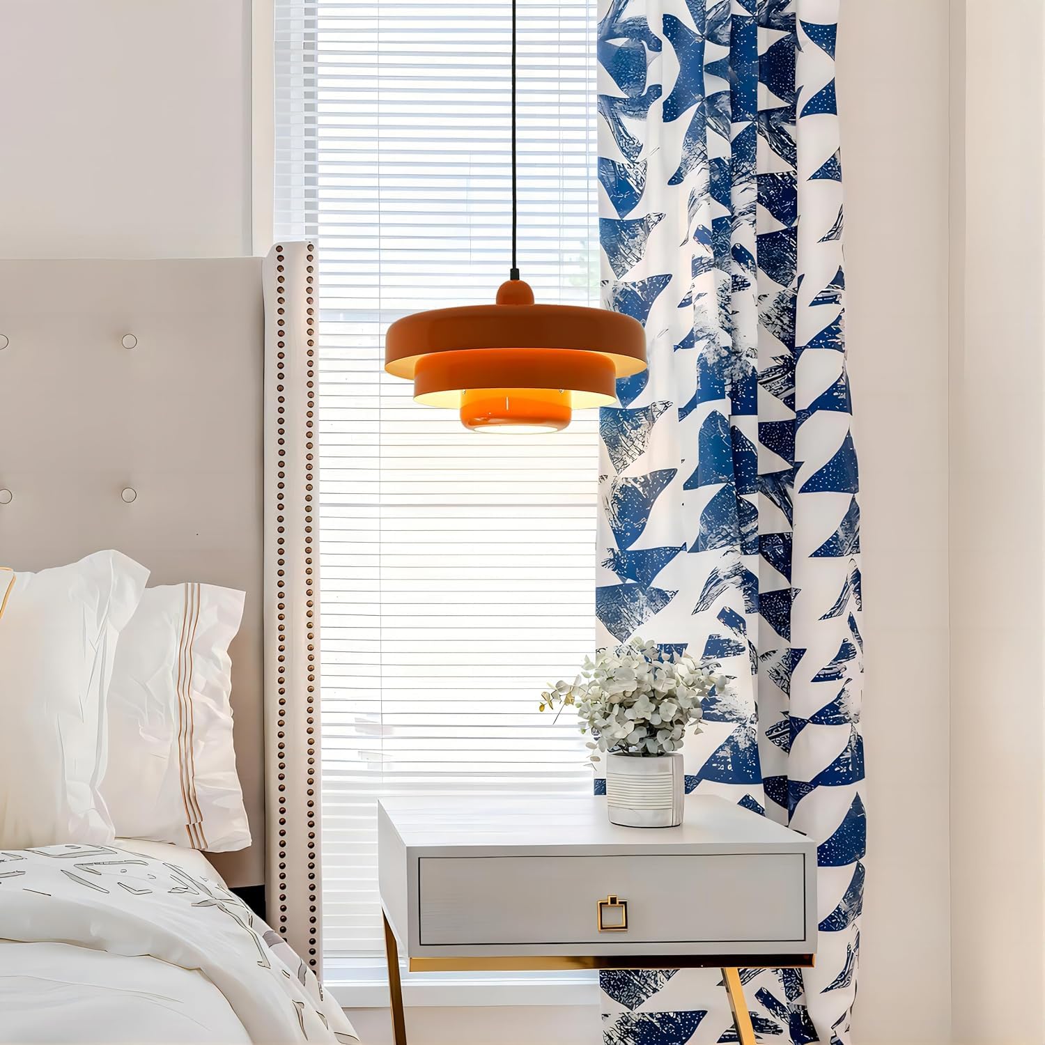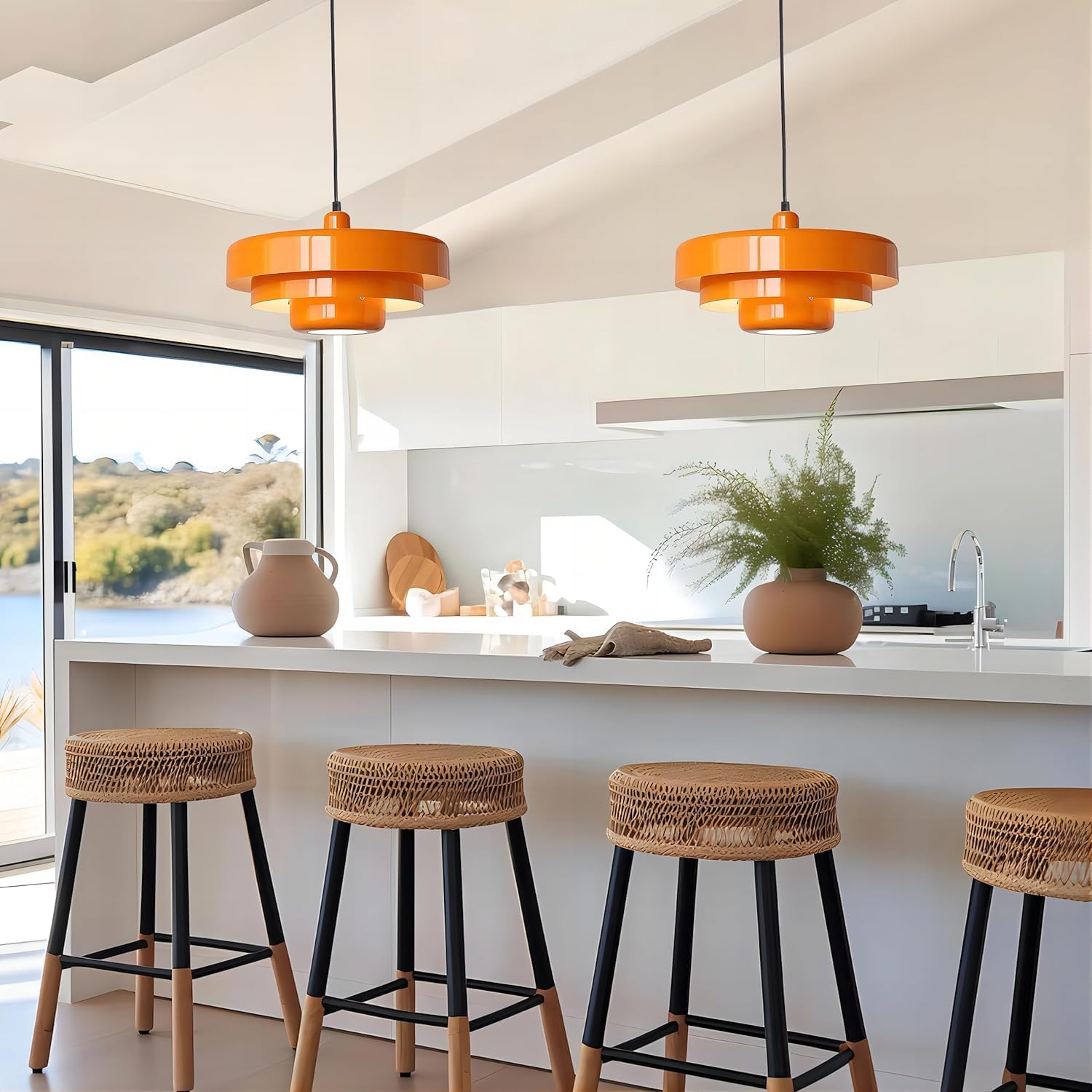 FCTWAKS Mid Century Pendant Light Fixtures 13.78 inch, 1 - Light Ceiling Pendant Lamp with 3-Layer Metal Shade, Height Adjustable, Vintage Orange Hanging Lamp for Kitchen Island Lighting,Dining Room