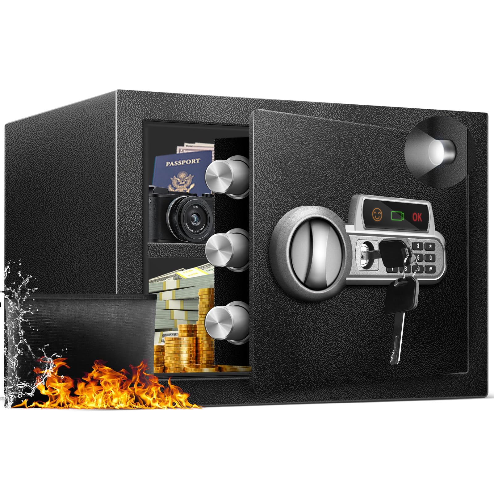 - 【Dual-Access Ease & Reliability】Offering both key and password entry options brings the best of both worlds to your home safe. The key provides a quick access method for emergencies or power outages, while the password entry offers convenience of daily access with the added layer of digital security.