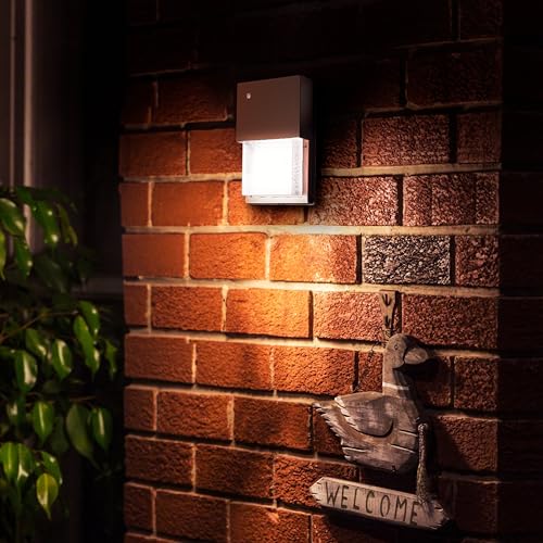 Details: The Feit Electric S10WPK/850/DD/BZ Wall Pack Security Light merges timeless style with all the advantages of efficient LED technology. Wall or eave-mountable, this light illuminates doors, backyards, or parking areas with super-bright 1,450 lumens while using less than 21 watts. It features a contemporary design with a bronze finish that complements the exterior décor of any space. 5000K Daylight white light provides vivid light that reveals fine details. A built-in dusk to dawn photocell sensor allows automatic shut-off during daylight hours, adding to overall energy savings. The heavy-duty, rust-proof aluminum construction and frosted polycarbonate lens provide extra durability to ensure this fixture outlasts the toughest storms and years of use. An integrated LED lasts 50,000 hours and eliminates the hassle of replacing bulbs.
