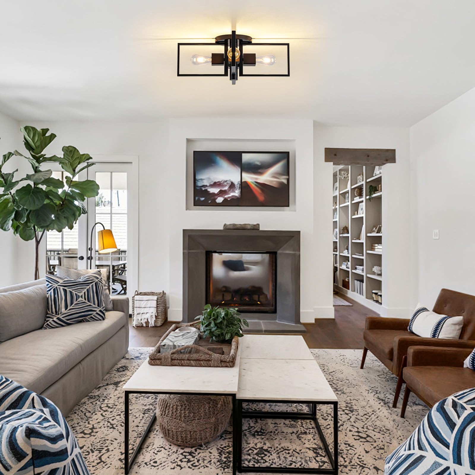 - [Durable & Elegant Ceiling Light]Our black ceiling light is made of a wooden base with natural texture and sturdy metal frame , becomes a durable and unique ceiling light fixtures for living room dining room