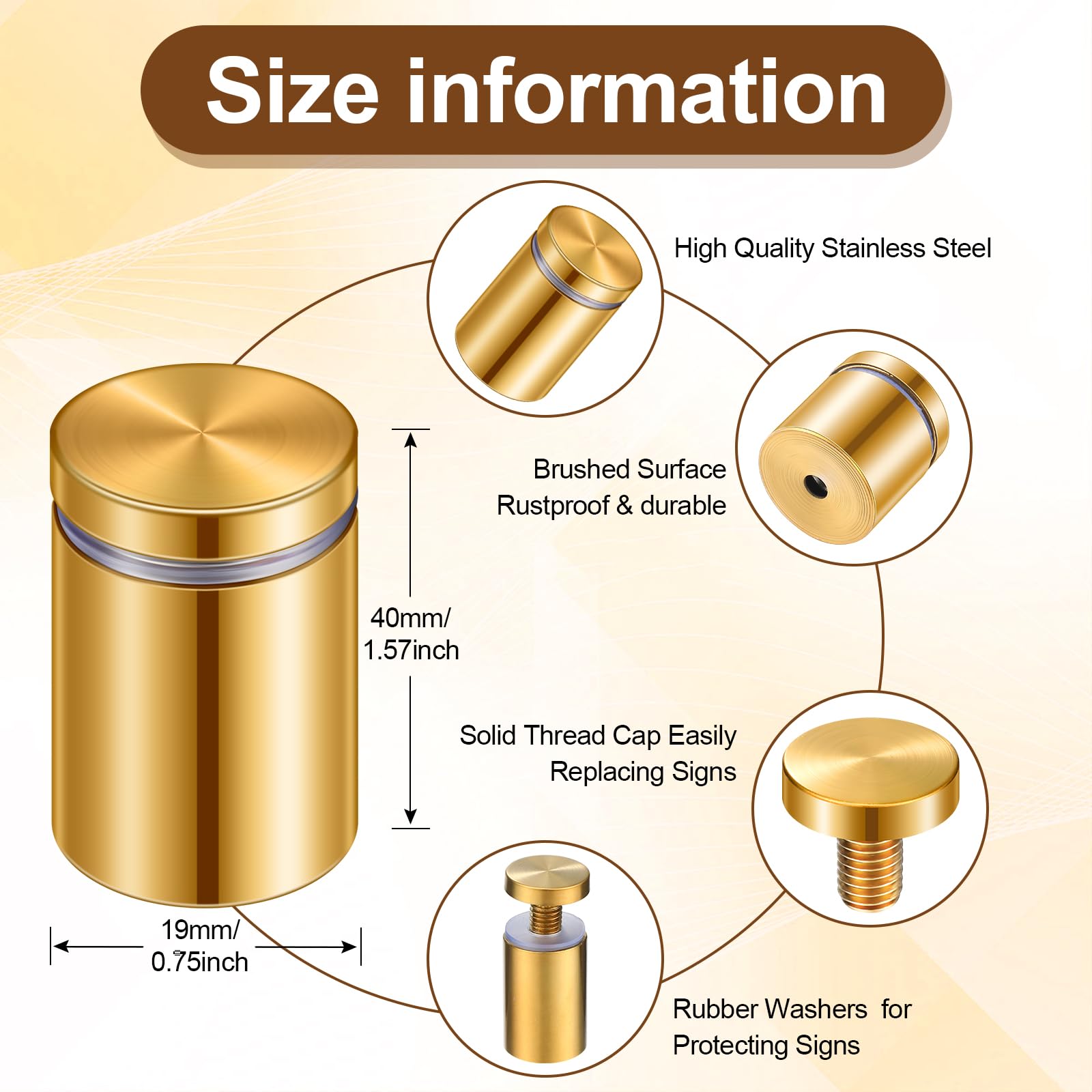 Ferraycle 8 Sets Standoff Screws Stainless Steel Advertising Standoff Mount Metal Hardware Sign Mounting Hardware for Hanging Acrylic Picture Frame(0.75 x 1.57 Inch)