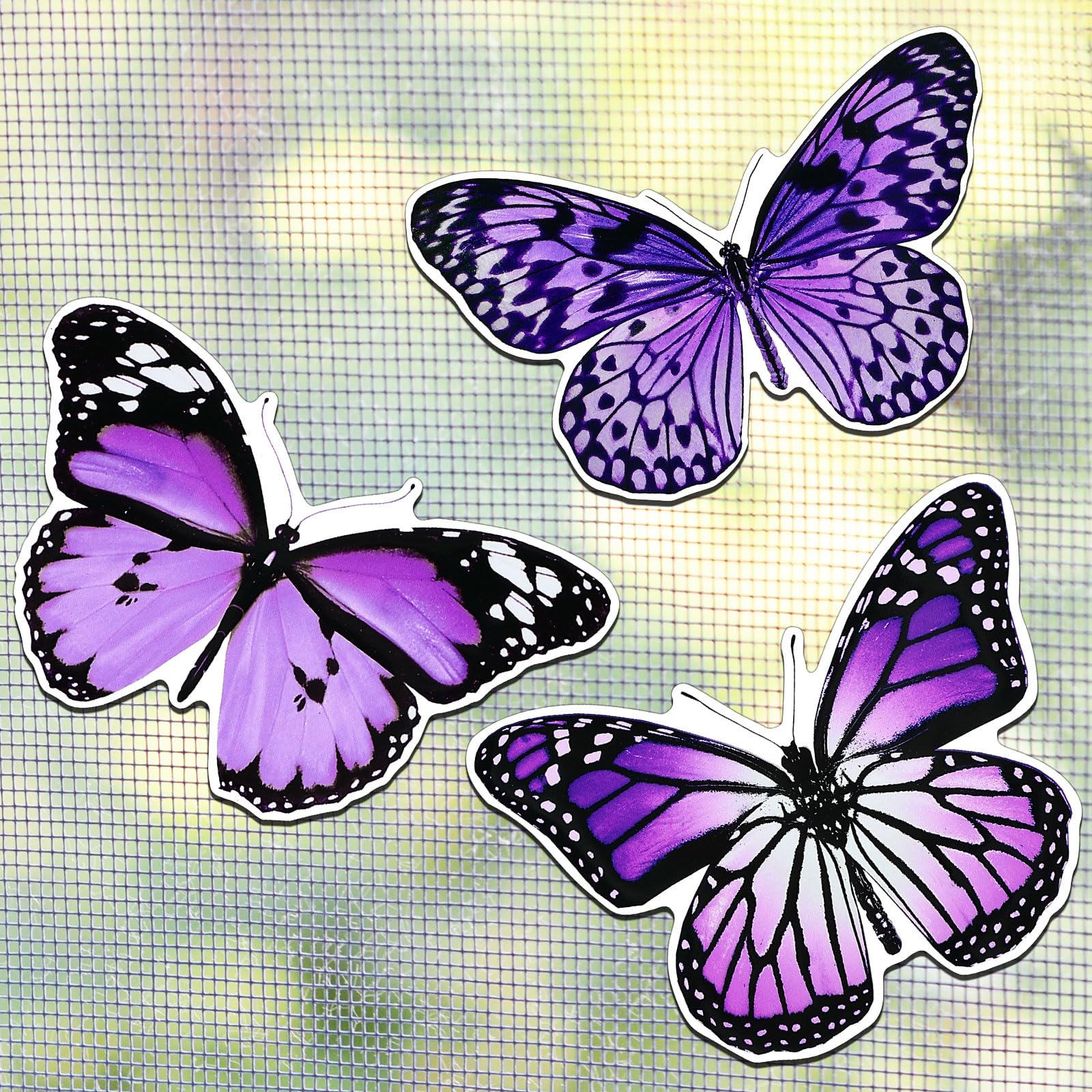 Fiada 6 Pcs Butterfly Screen Door Magnets Flexible Double Sided Door Magnets Decorative Protectors for Sliding Screen Doors Prevent People & Pets from Running into Windows(Purple,Cute Style)
