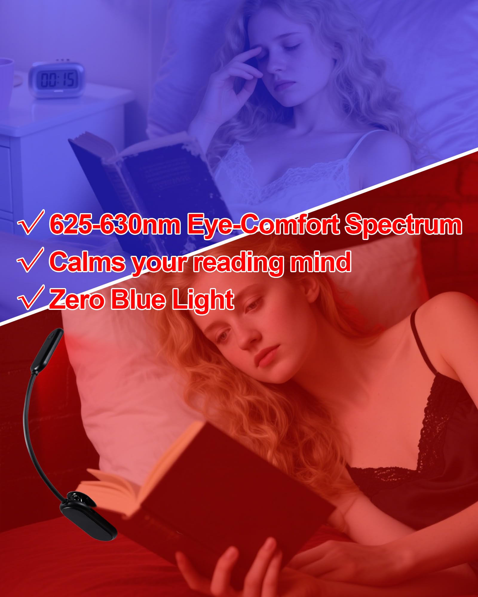 - Red Light Book Light for Night Reading & Deep Sleep: Unlike harsh white lights, our reading light pure 625-630nm red light mimics natural firelight, zero blue spectrum to protect melatonin and improve sleep. Perfect for night reading, baby care, or shift workers—no sleep disruption