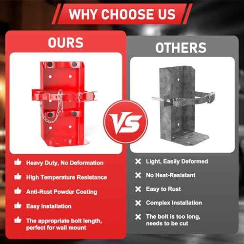- Wide Compatibility: Our bracket in red color is designed to match the red fire extinguisher of different types.The size of 10 lb extinguisher mounting bracket is 6.02x6.02x11.42", which accommodates both 10lb dry fire extinguishers and 5lb CO2 fire extinguishers, offering flexibility with one bracket fitting multiple sizes.