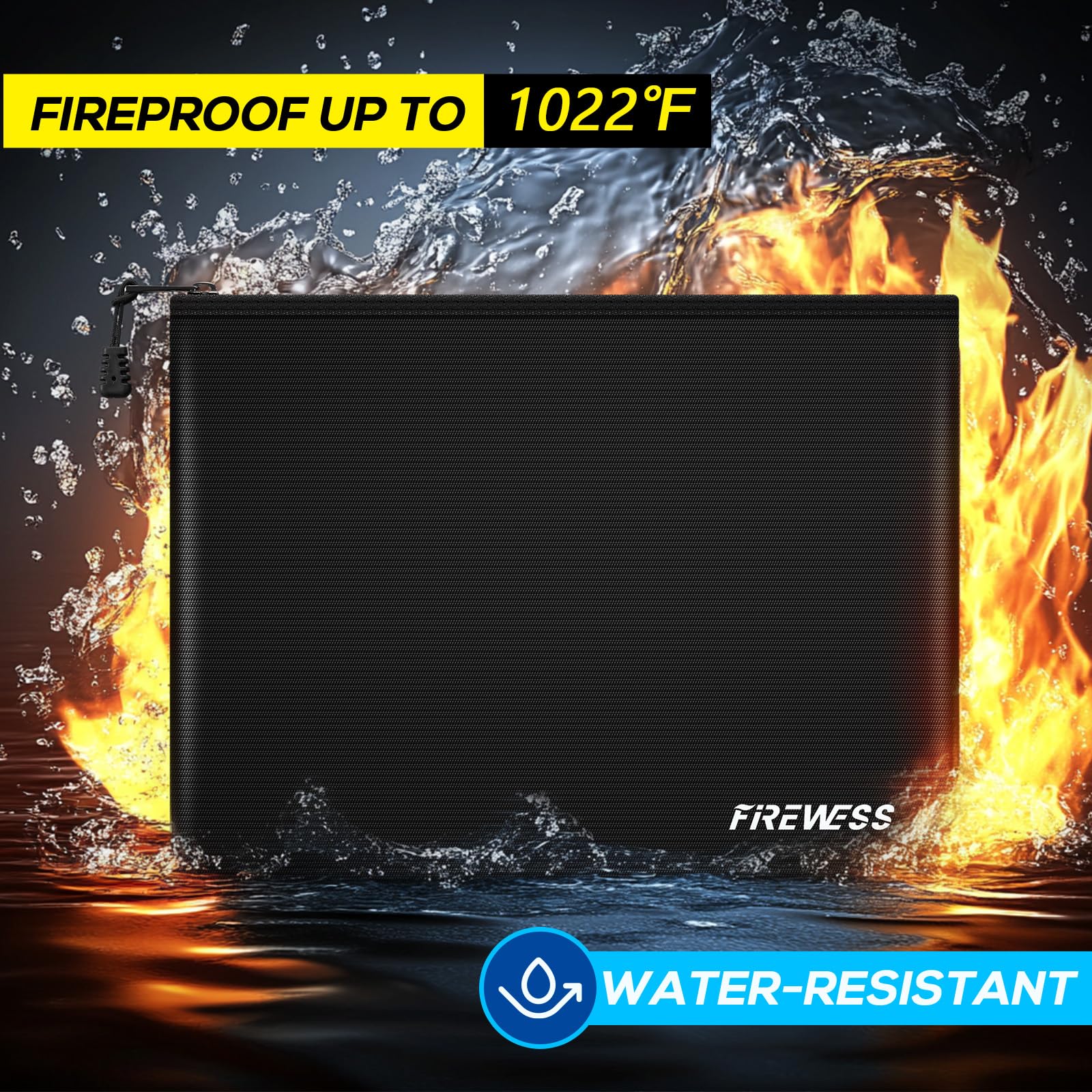 Fireproof Document Bag -2 Pack 13.4"x10" and 11"x6" Non-itchy Fireproof Money Bag, Waterproof Zipper holder for Valuables, Fire & Water Resistant Safe Pouch for File,Cash,Passport,Keys