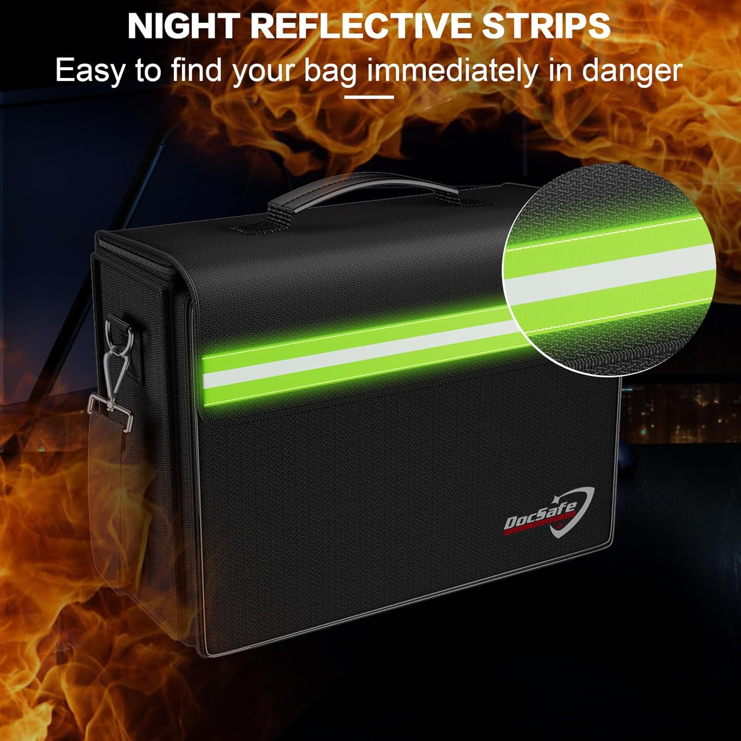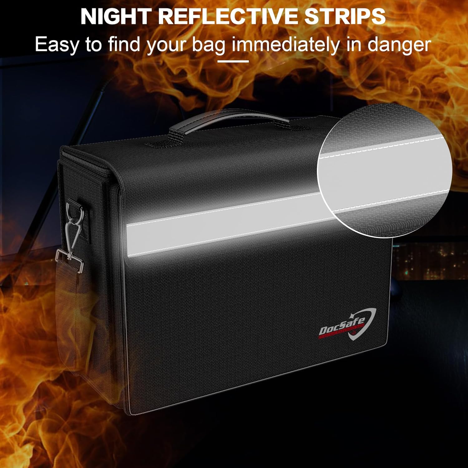 5. The reflective strip design on the side of the bag allows you to immediately find your fireproof bag even at night