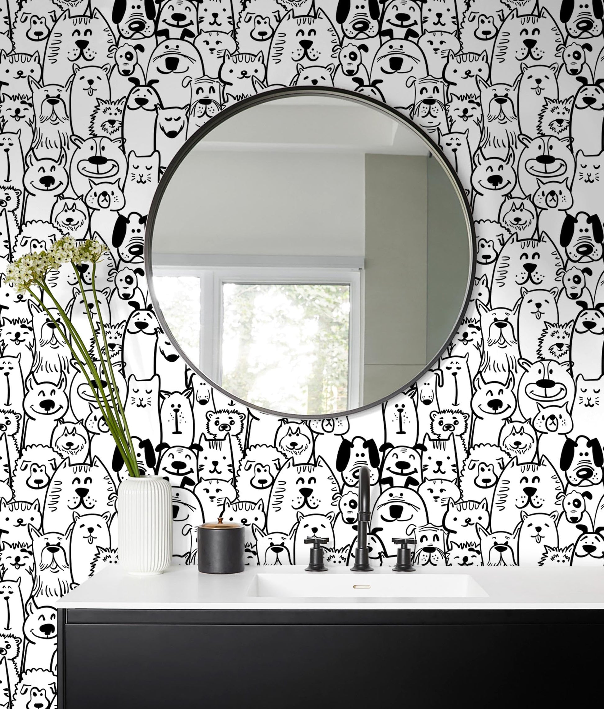 - DIY: This black and white dog wallpaper is perfect for nurseries, children's rooms, or tabletops, giving kids the opportunity to doodle and express their creativity. It enhances your home decor while stimulating children's imagination.