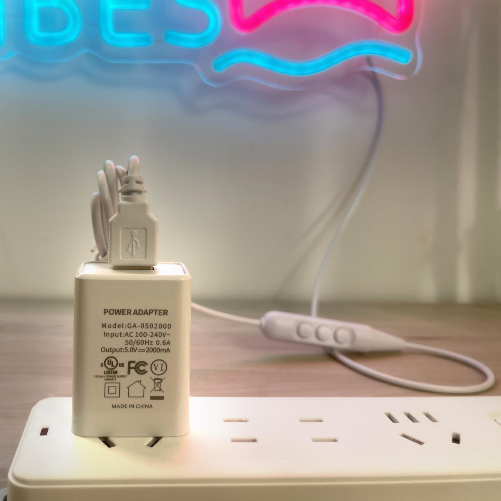 - 【Plug and Play】The charger has an input of 100-240V and an output of 5V 2A, with a maximum power of 10W. Simply plug the neon light USB C into the charger and connect it to the power supply to light up the neon light.