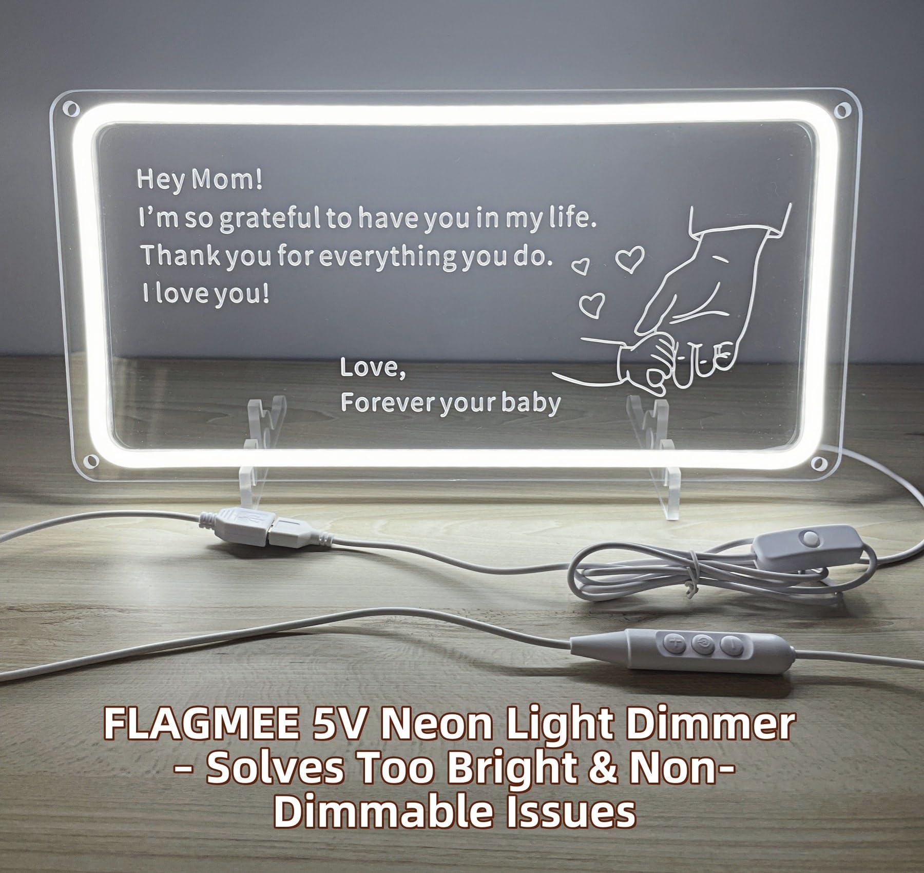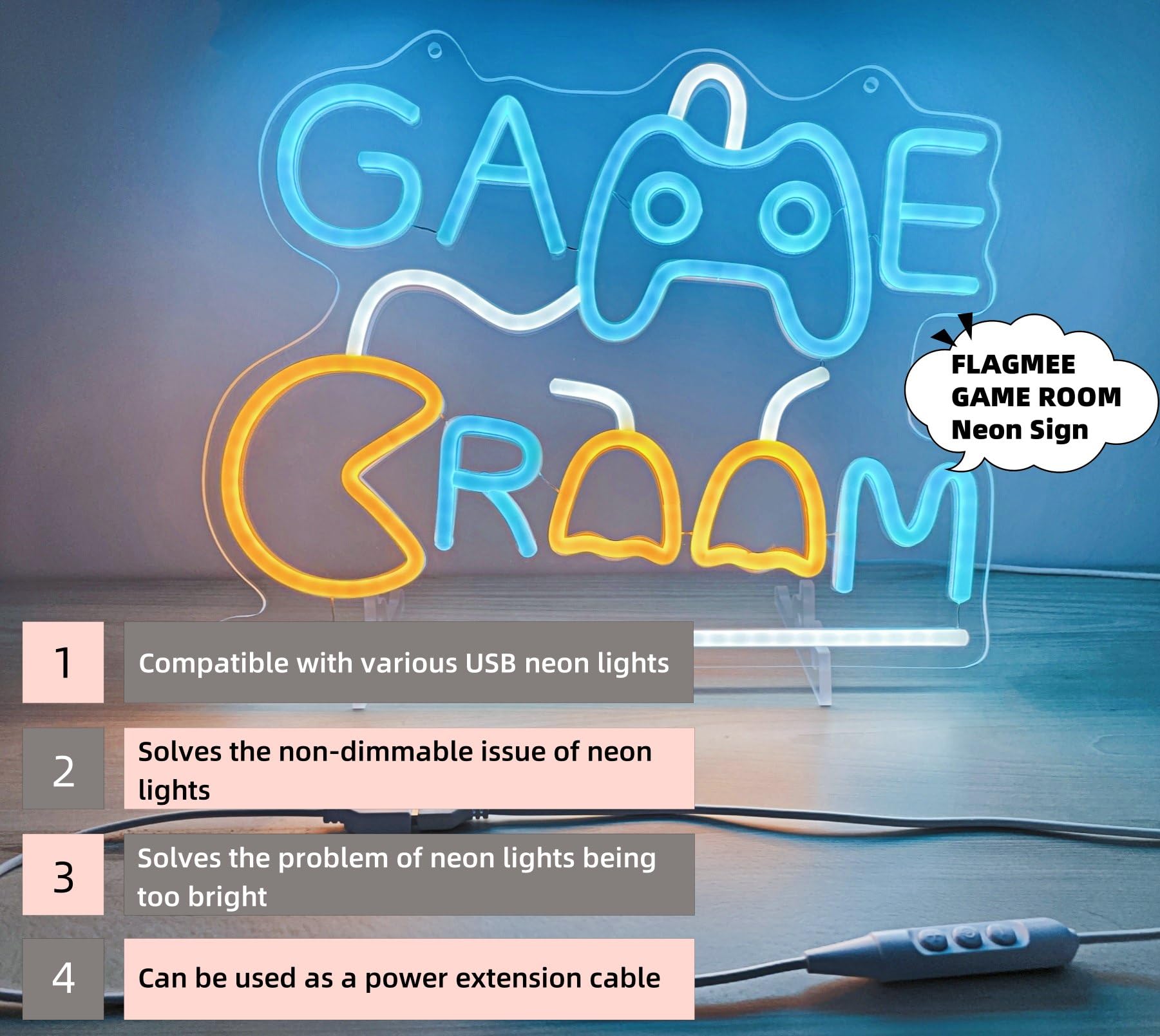 FLAGMEE Neon Light Dimmer Switch USB Adapter for 5V LED Neon Signs - Adjustable Brightness Controller, 1.5M Power Cord, Solve Non-Dimmable Lights
