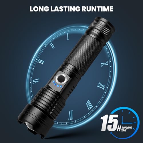 - IPX7 Waterproof & Strong Durability - Rechargeable high lumens flashlights are waterproof to IPX7 for long-lasting durability in rainy days, making it ideal for both outdoor and indoor use.