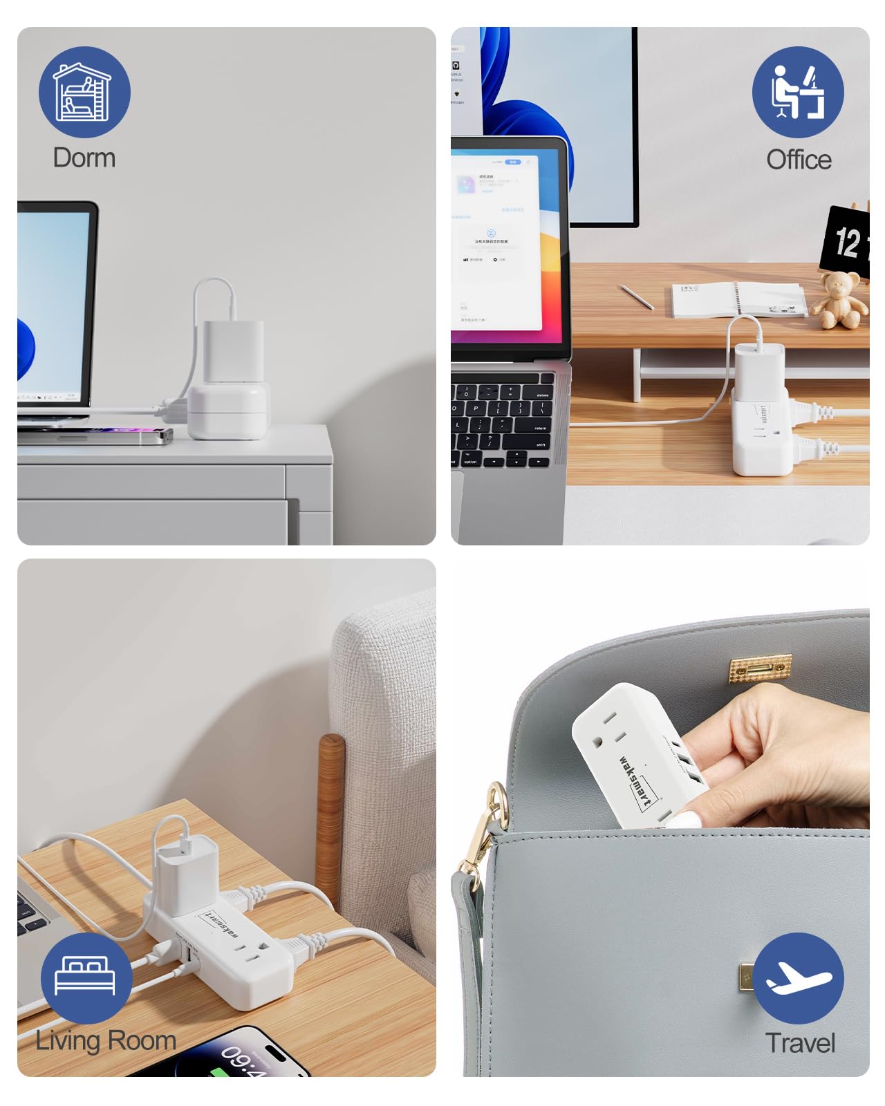 - 【Compact Size for Travel】This USB-C power strip measures just 4.5 x 1.7 x 1 inches, making it easily fit in the palm of your hand and seamlessly slip into any handbag or briefcase., perfect for on-the-go travelers. The short extension cord 3FT is designed to be portable and lightweight, allowing for easy carrying