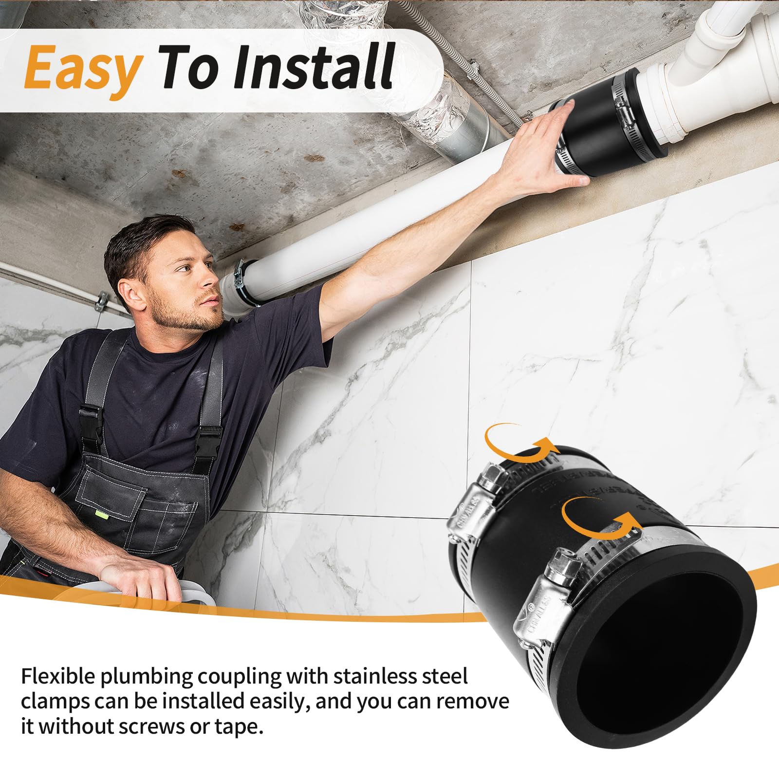 - Easy to Install:Designed for user convenience,flexible coupling comes with stainless steel clips for quick installation. No screws or tape are needed, and the universal nut can be easily tightened with a screwdriver or socket wrench, saving time and effort