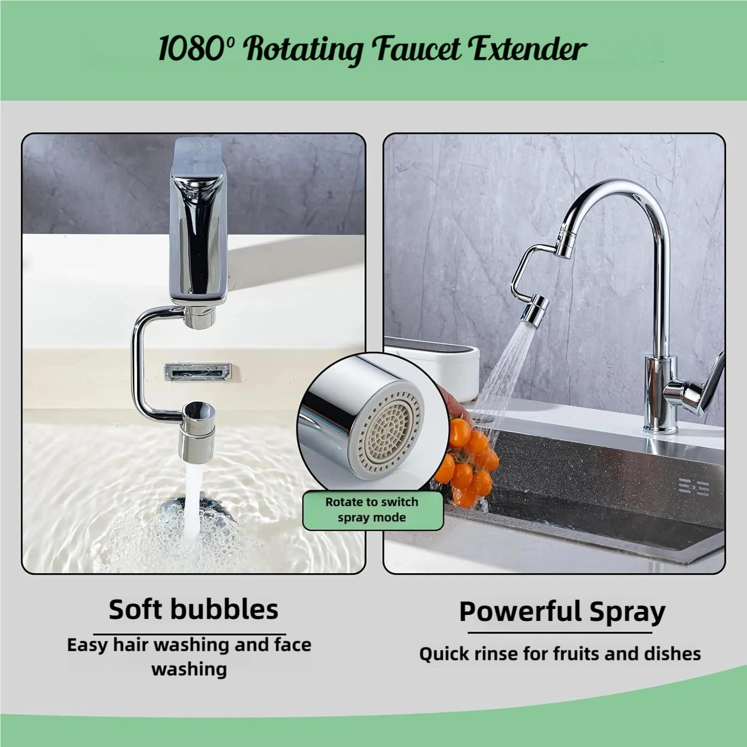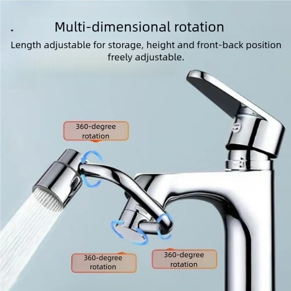 - 1080° Full Rotation for Ultimate Flexibility Enjoy unmatched maneuverability with our faucet extender's 3 adjustable joints, offering a full 1080° rotation. Easily adjust the angle to wash your face, rinse hair, or fill large containers—no more straining or awkward bending. The perfect solution for kids, seniors, and anyone seeking a more comfortable sink experience.