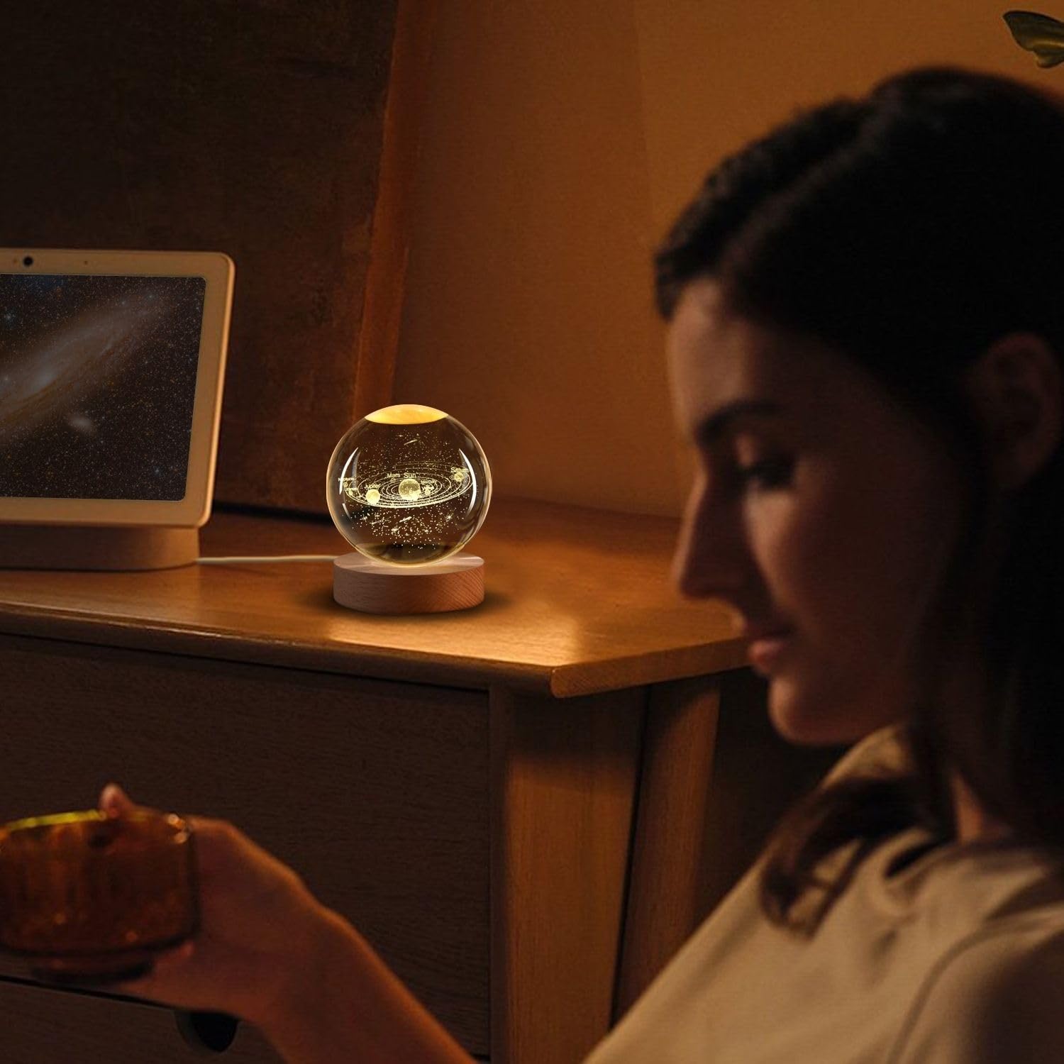 - Sustainable Craftsmanship - This 3D glass ball light is constructed from resilient beech wood and premium crystal, this 3D crystal ball solar system night light combines durability with a touch of sustainability