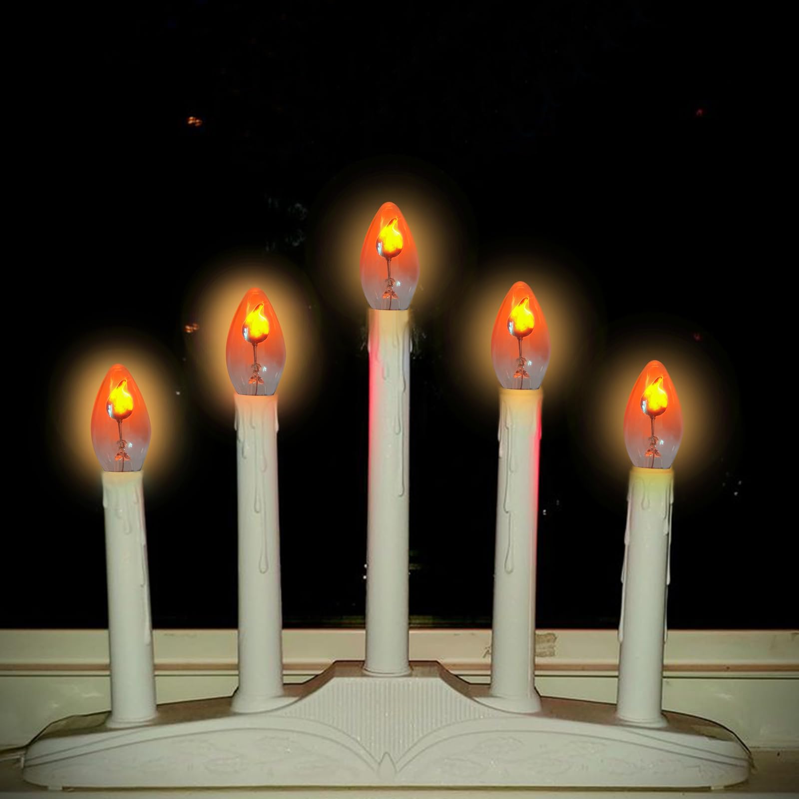 - Flame Bulb Versatile Decorative Use: E12 Flickering Flame Bulb are great for electric window candle, night lights, chandelier, ceiling fan, indoor outdoor string light, Holiday, Christmas and Halloween decorations lighting. Outdoor flame light bulbs convert regular lights string into unique conversation starters.