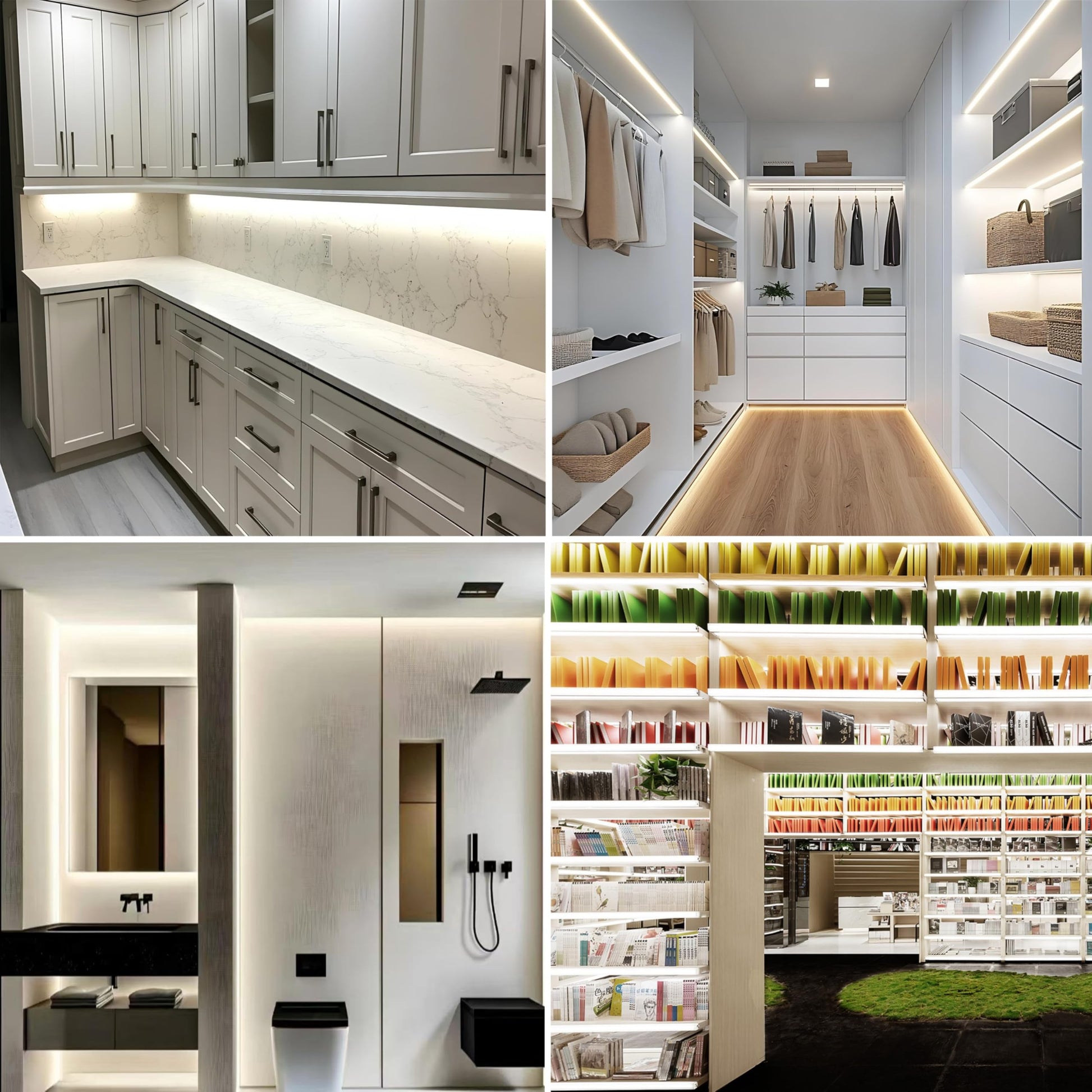 - Seamless, Spot-Free COB LED Technology: Featuring advanced Chip-on-Board (COB) LED technology, our strip is 146 LEDs per foot, 4800 LEDs per spool, ensuring a smooth, dot-free, uniform lighting effect. Ideal for areas requiring consistent, eye-friendly illumination, such as kitchens, offices, and architectural projects