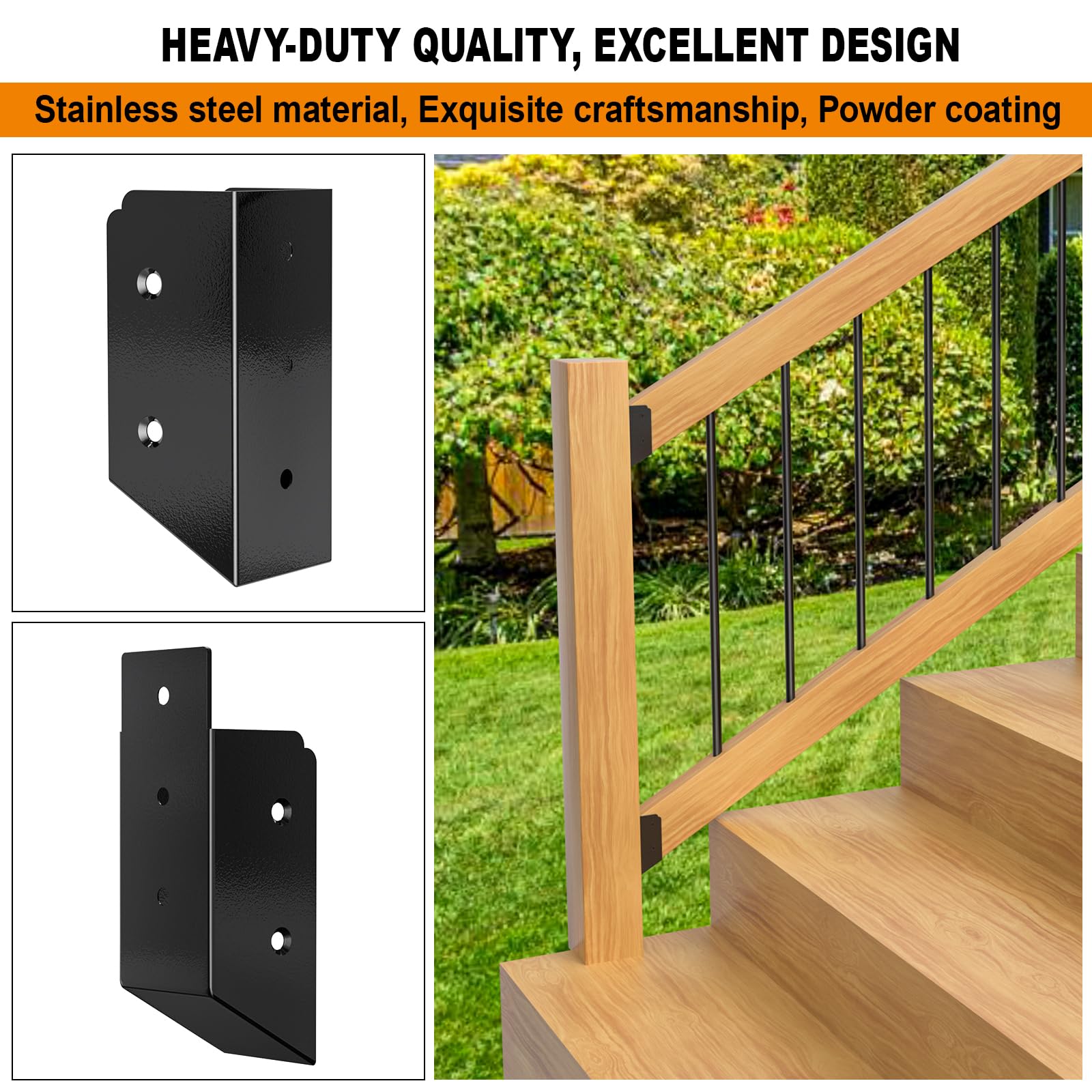 - 【STURDY MATERIAL】Staircase railing made of high-strength and corrosion-resistant 201 stainless steel material, high-temperature black powder coating treatment, waterproof, rust-proof, can resist the erosion of wind and rain and high temperature in all seasons.
